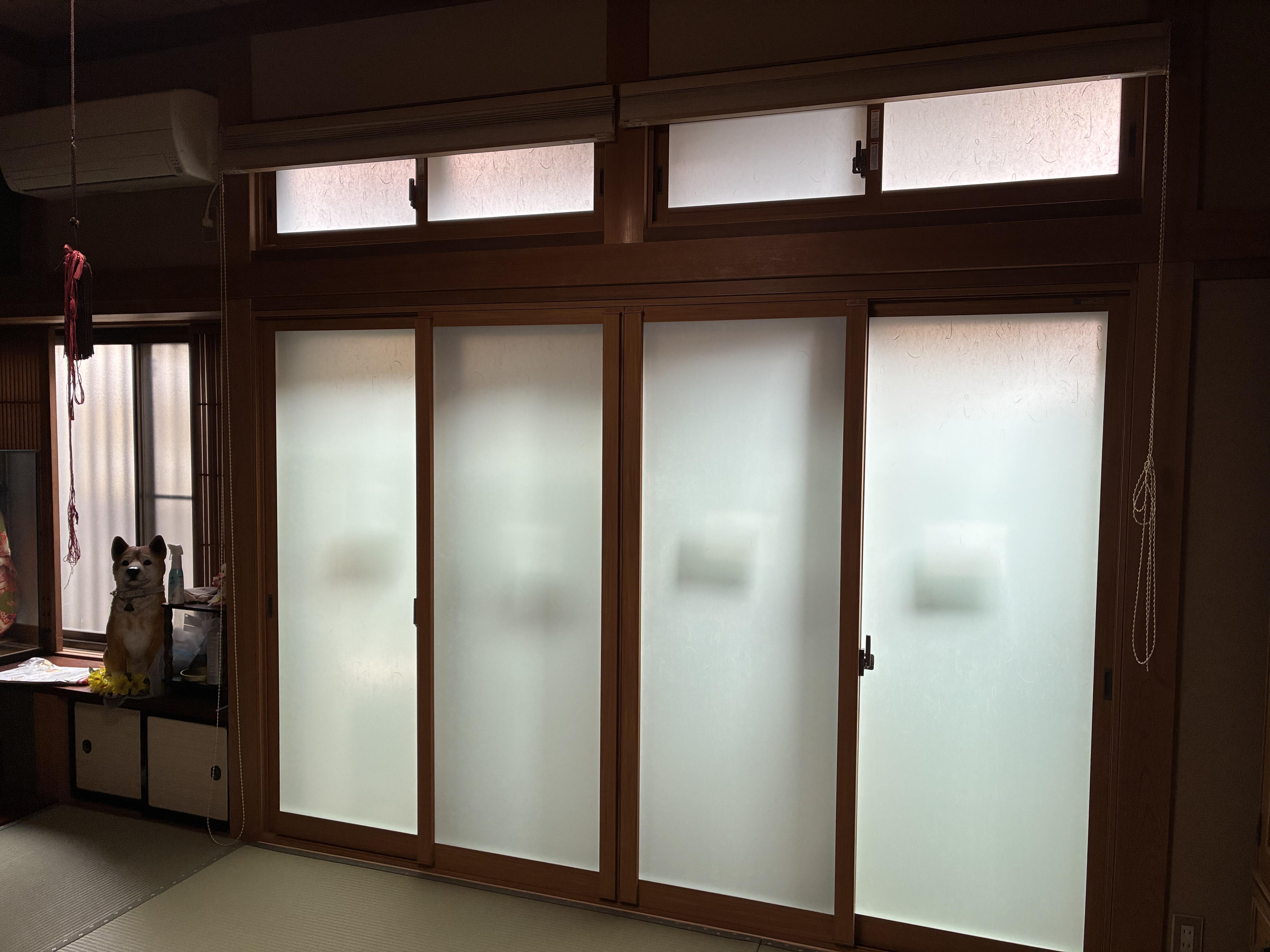 外窓の取替の場所がかなり狭い場所だったので、作業をされるのがお施主様も私もかなり心配していましたが、どうにか作業をしていただきはつり工法で、雨戸ごとの外窓の取替と、 和室のランマ部分を和紙調の内窓へ取替をさせていただきました。和室の日当たりが悪くて日中も暗くて冷えてしまうのですが、外窓の断熱Aグレード対応と内窓もSグレード対応のガラスなので、取付すると直ぐに暖かさと防音効果が感じられてもちろん雨戸付で防犯対策も安心です。