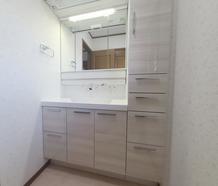 洗面脱衣室の床リフォーム!クッションフロアに張り替えて洗面化粧台も交換しました!