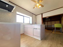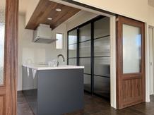 店舗の独立型キッチンを対面キッチンに!壁を解体して開放感のある建具を取り付けました!
