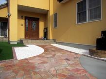 味わい深い質感と趣のある色合いが魅力の天然石アプローチ(甲斐市)