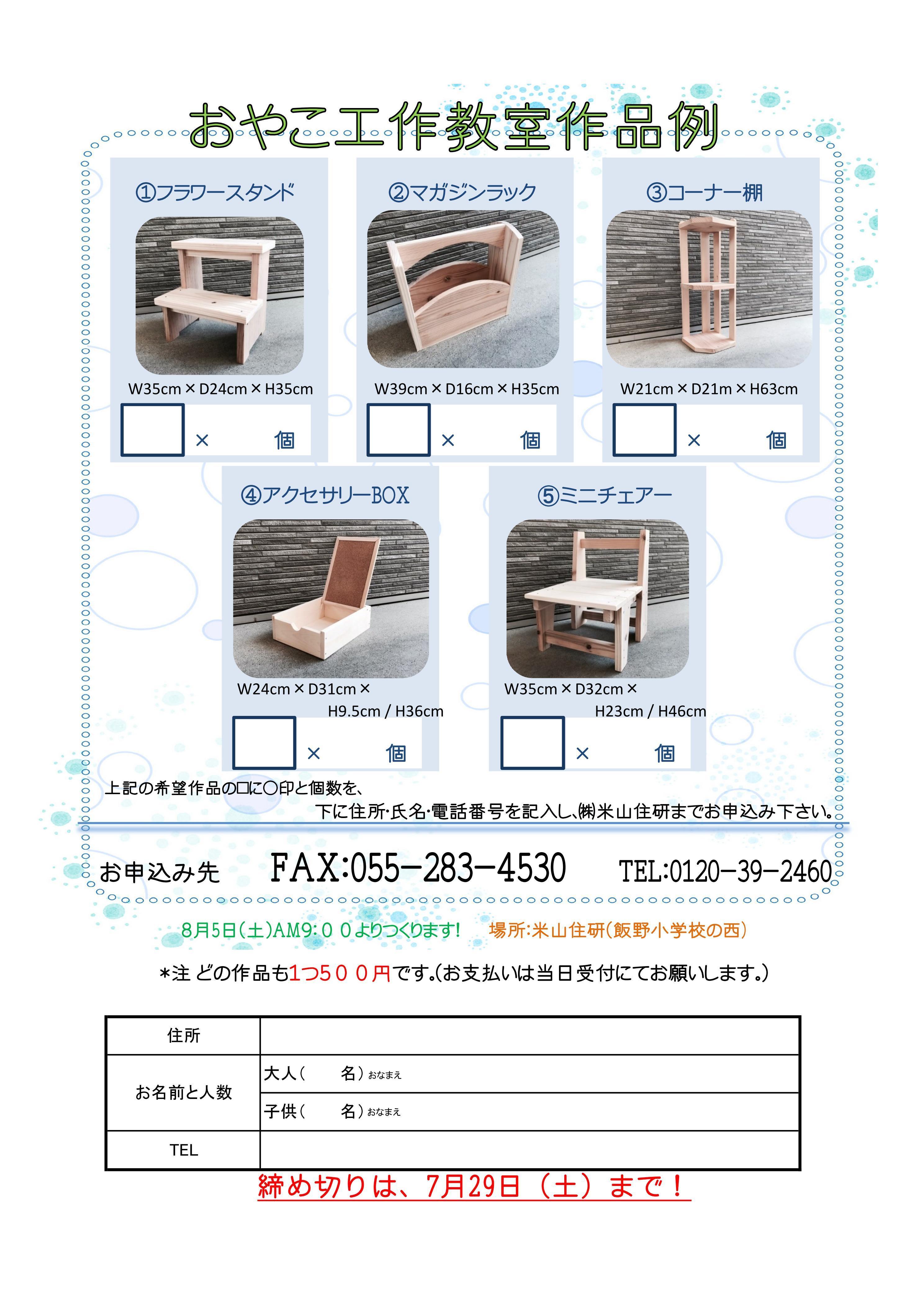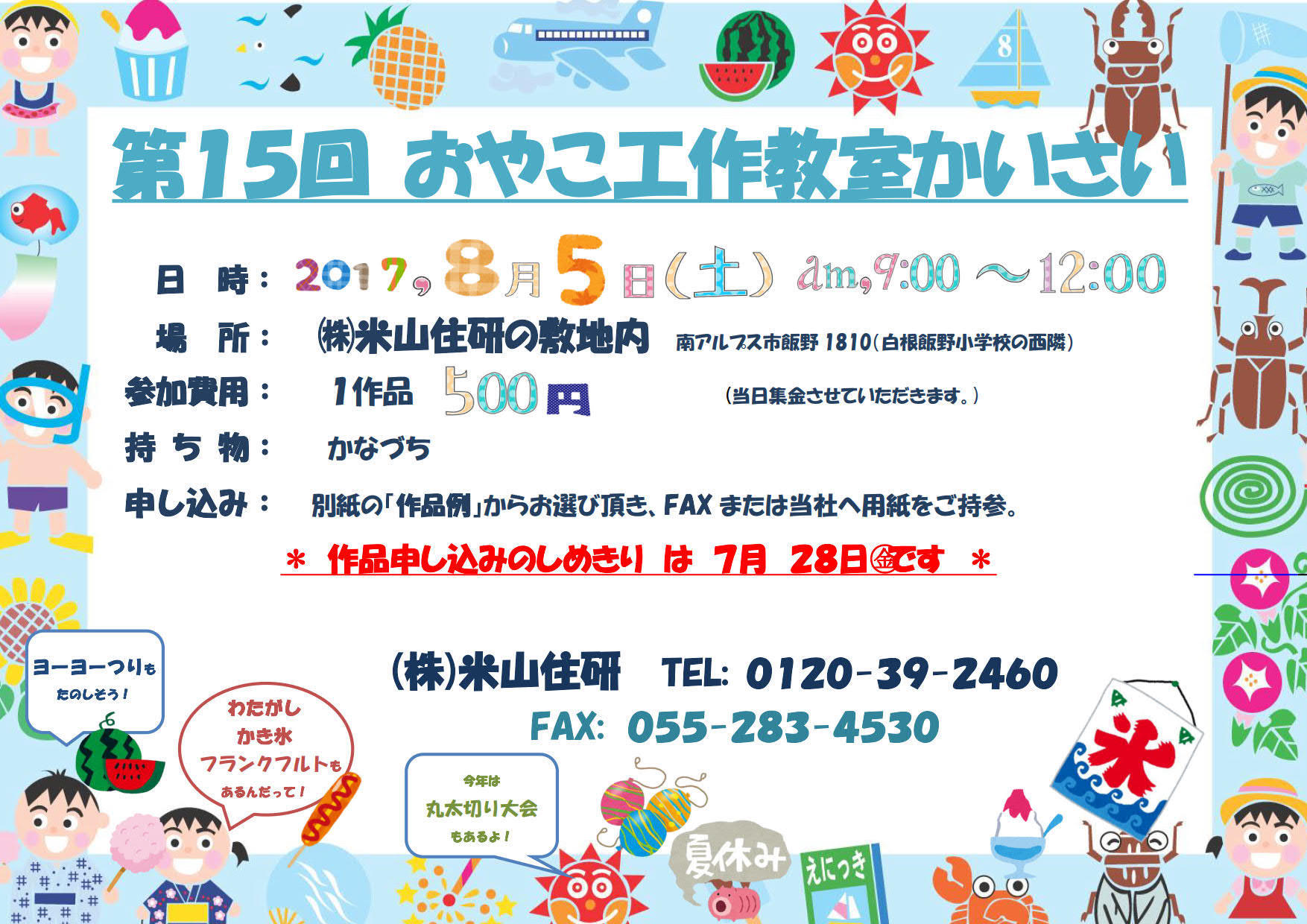今年もやります!第15回「おやこ工作教室」(*^▽^*)