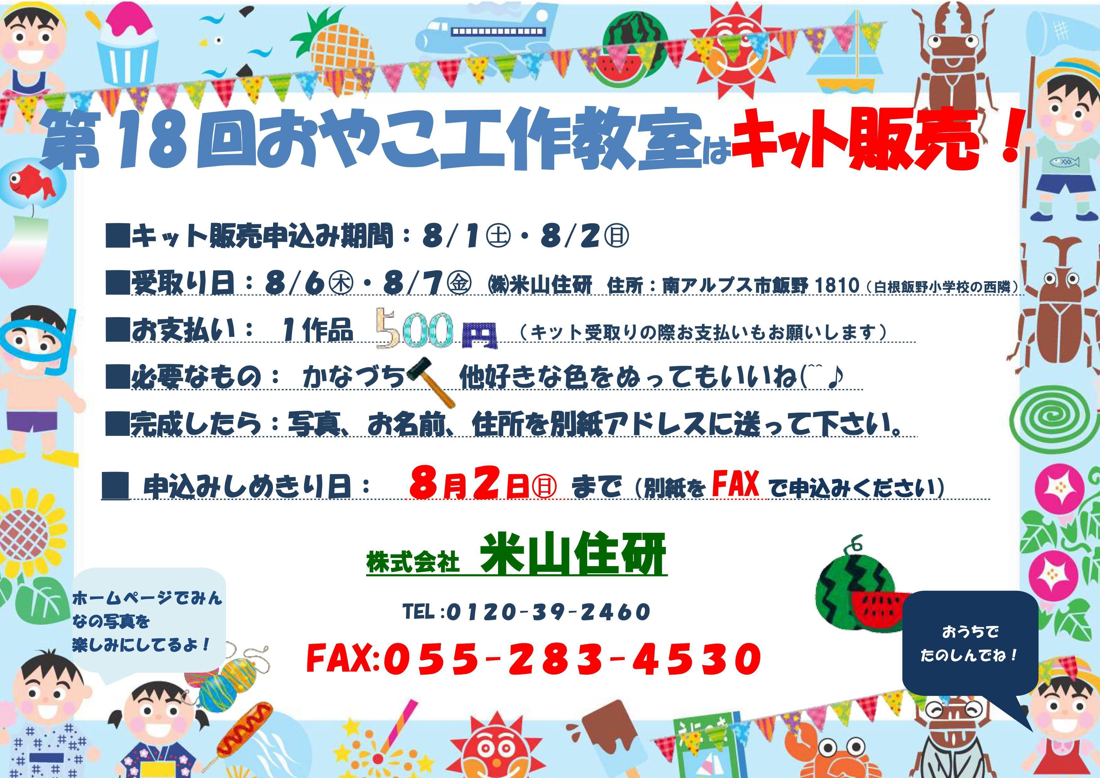 今年もやってきました!この季節!第18回目のおやこ工作教室はキット販売します!(^^)!