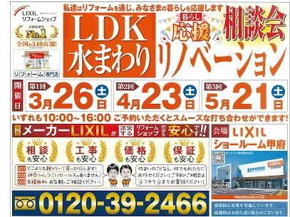 LIXILショールーム甲府にて【LDK/水まわりリフォーム相談会】を開催します!