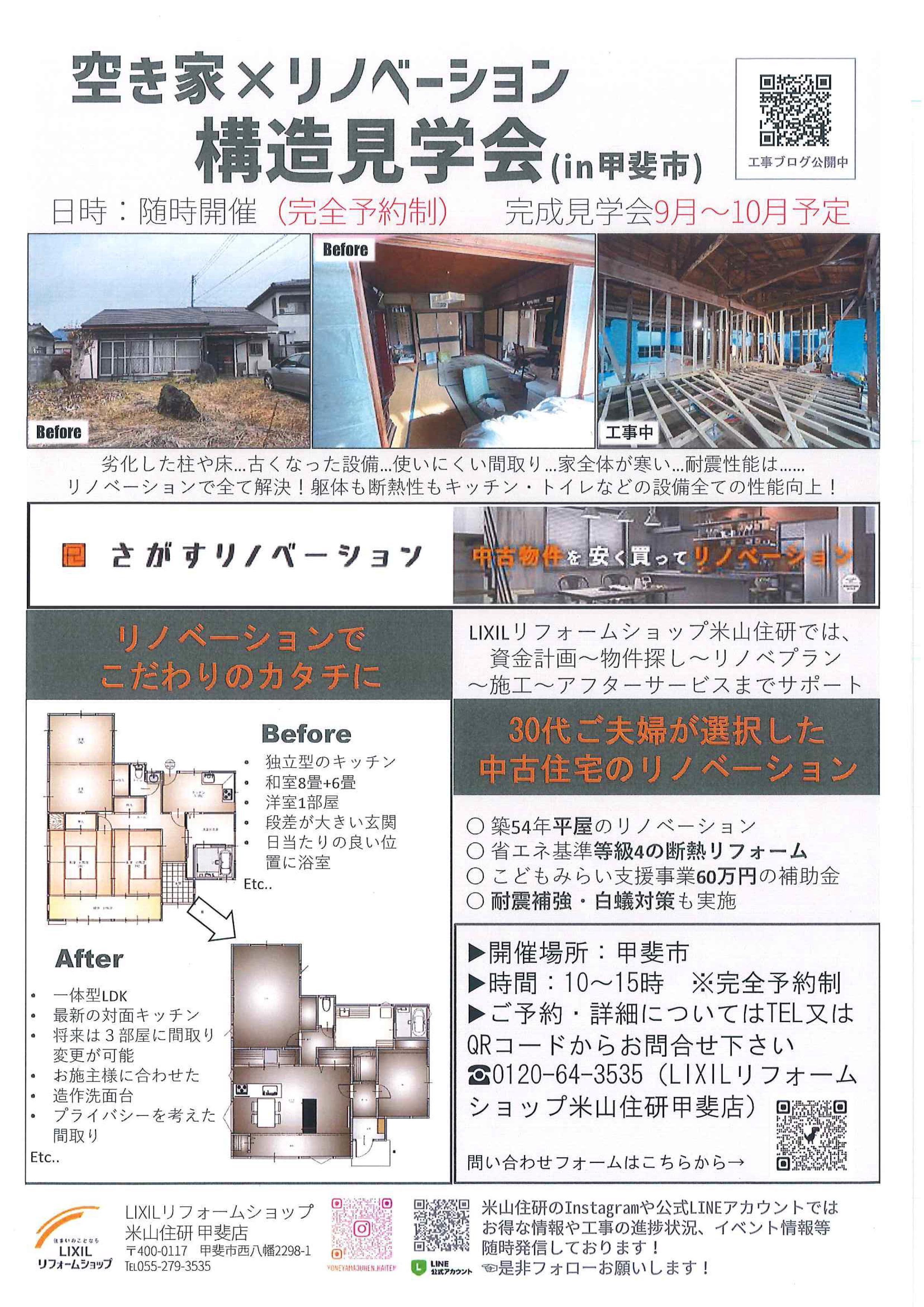 ※公開中の工事ブログはこちらをクリック(若しくは下記チラシ上段のQRコードから)