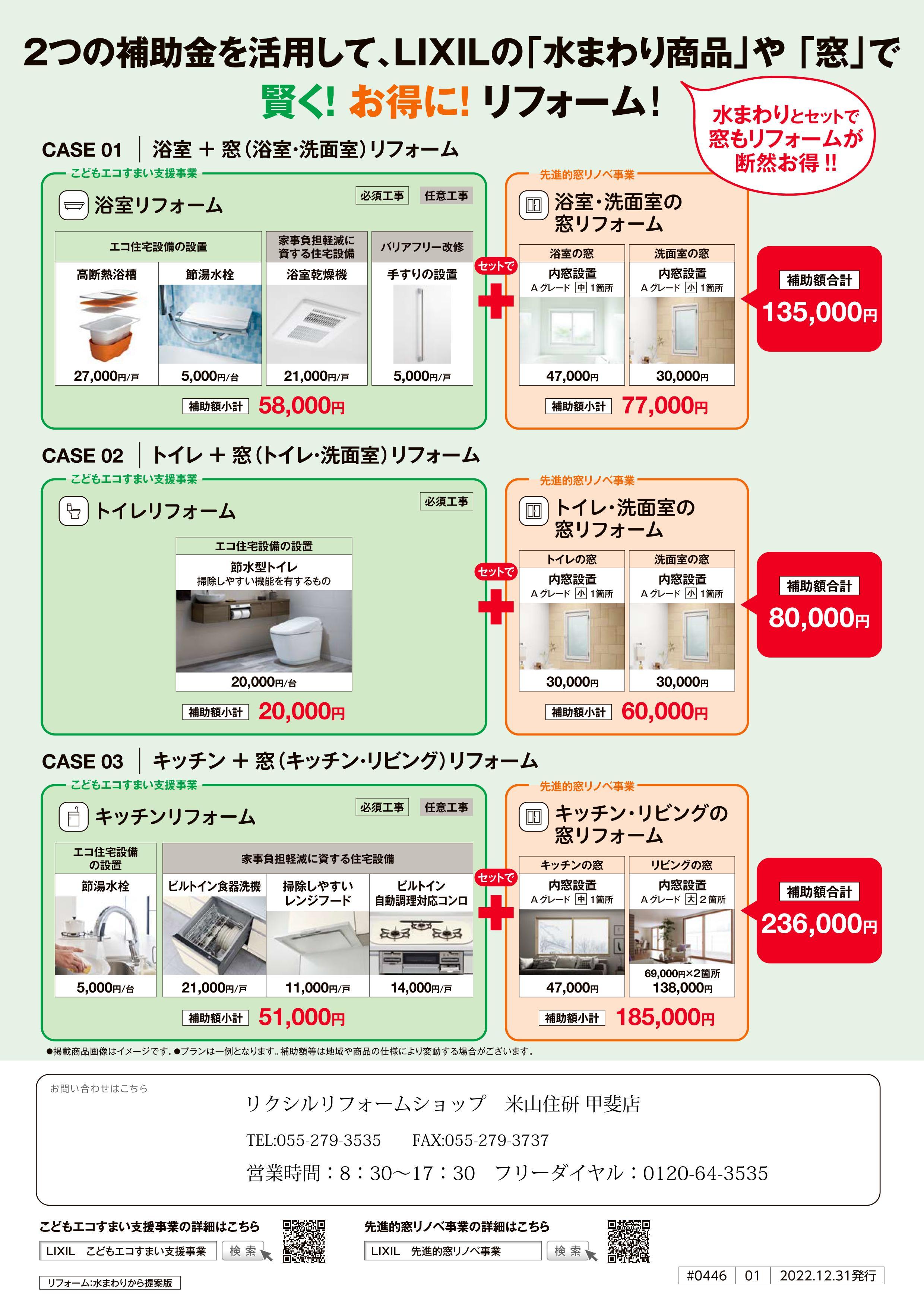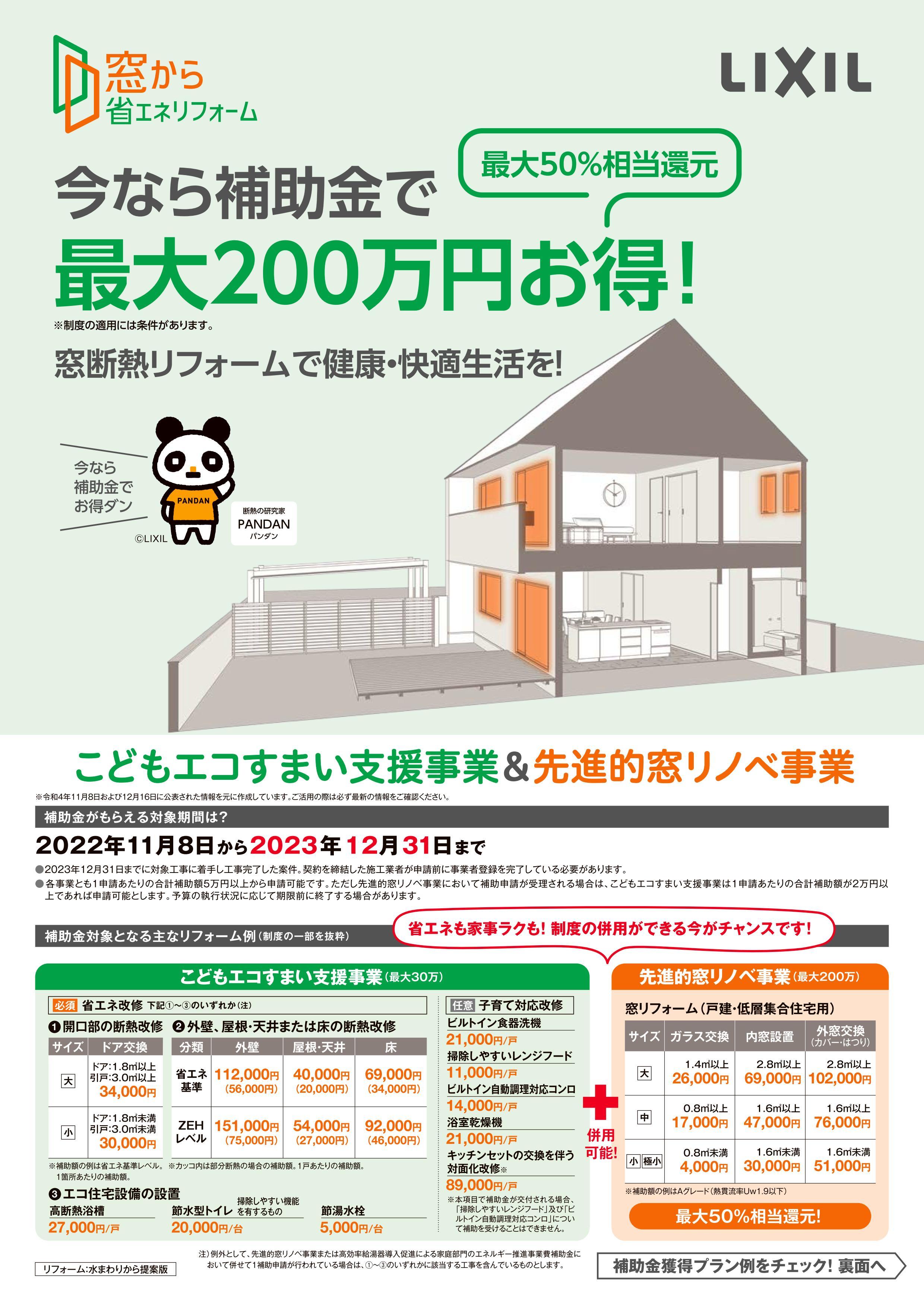 2つの補助金を活用して、LIXILの『水まわり商品』や『窓』で
