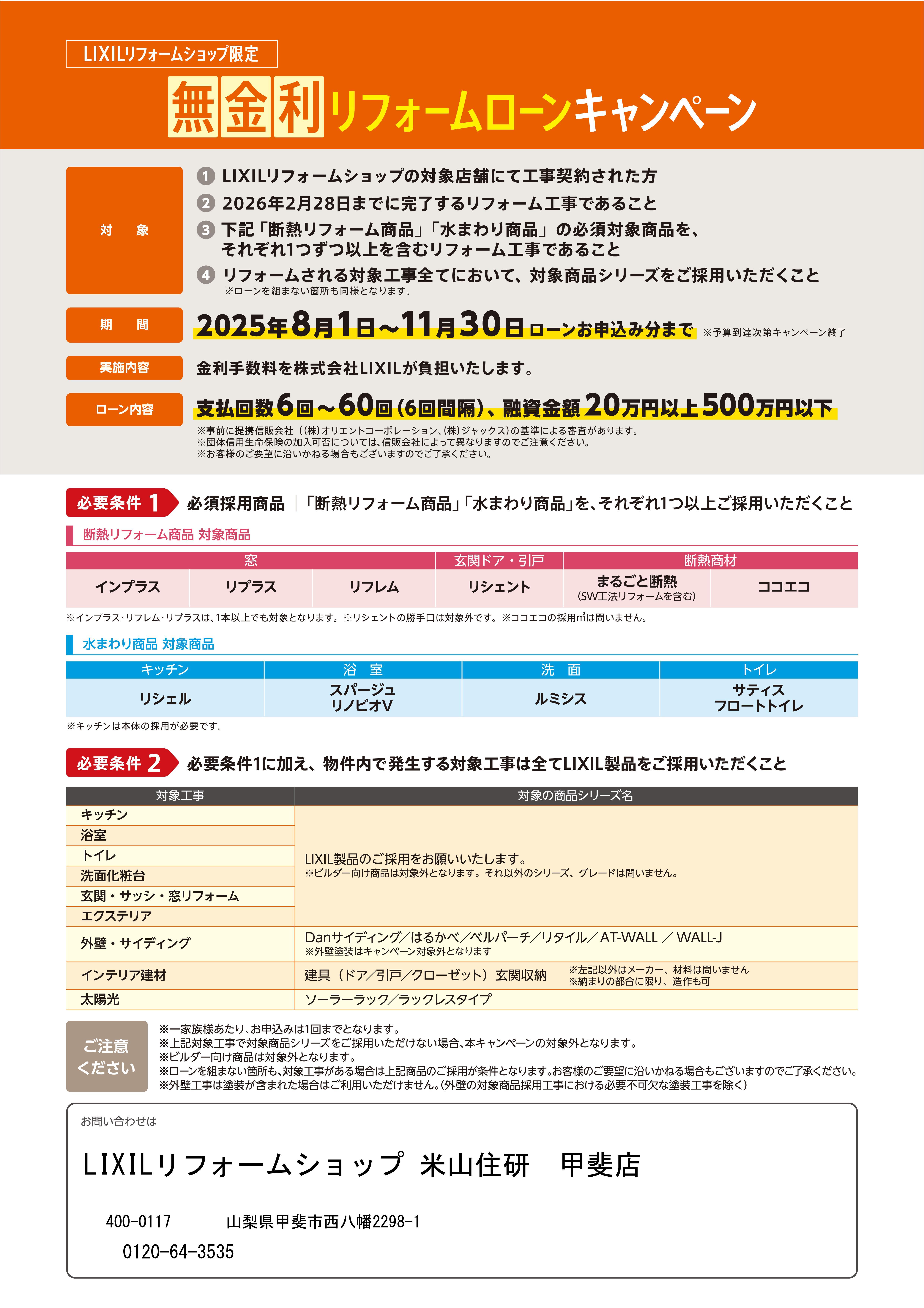 2025年度も、期間限定で「無金利リフォームローンキャンペーン」を以下のように実施いたします。
