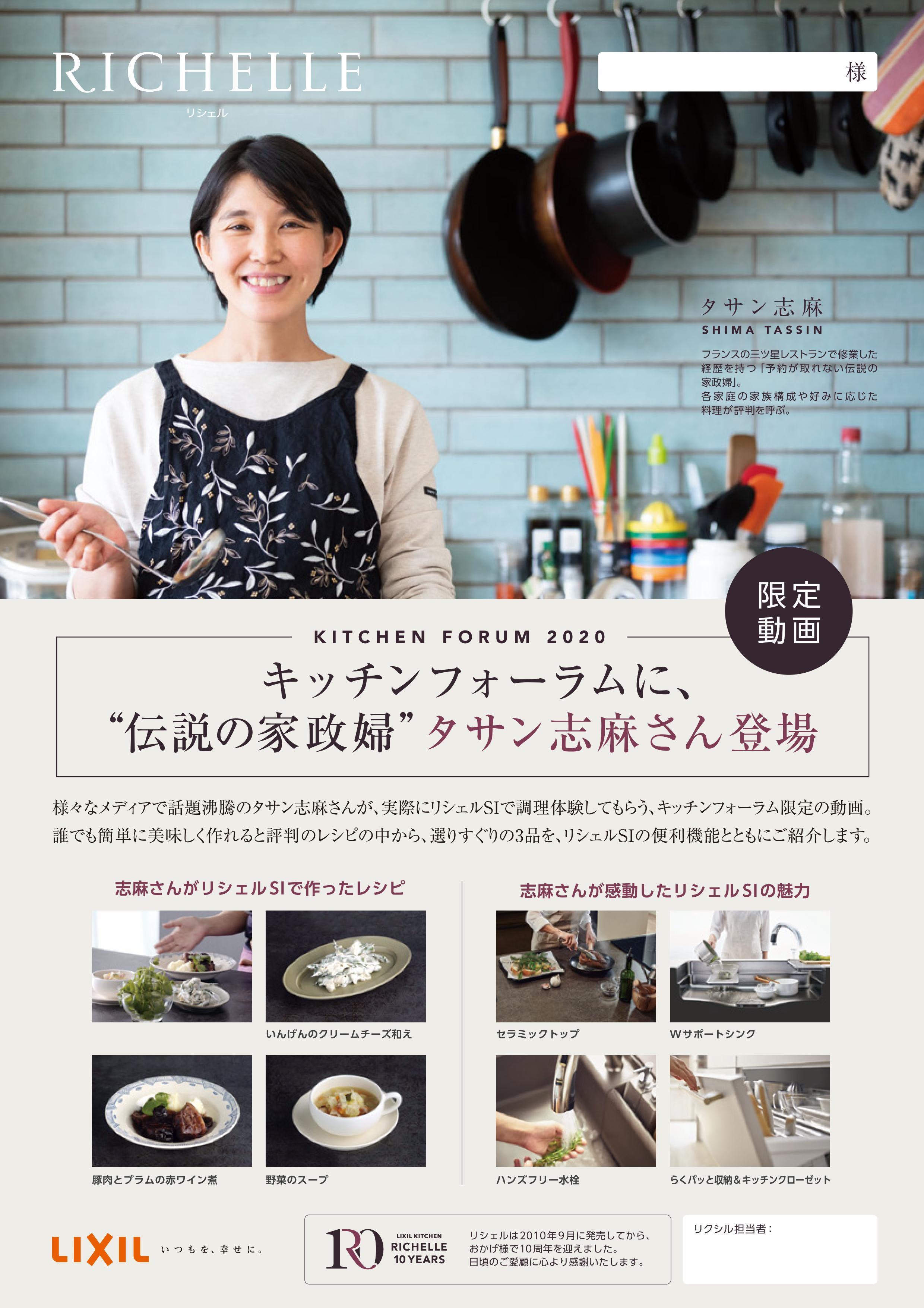 様々なメディアで話題沸騰のタサン志摩さんが、実際にリシェルSIで調理体験してもらう、キッチンフォーラム限定の動画。