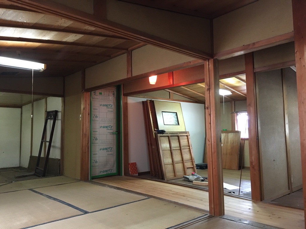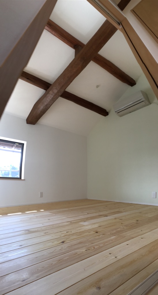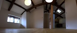使っていなかった母屋の2階へ水廻りも増設する二世帯化のリフォームです。 かつては子供部屋として、現在は物置と化していた古い数部屋の和室が 歴史を感じる大きな梁を利用した素敵な空間に生まれ変わりました。