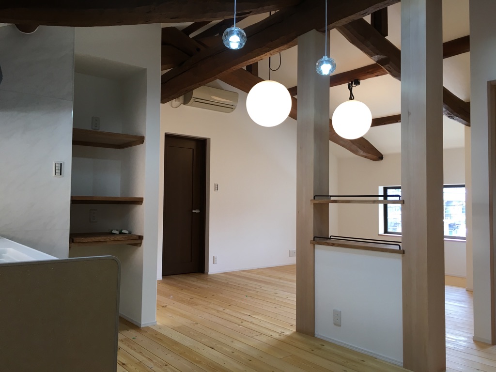 古民家リノベーションをしていだきました。梁の重みと明るくカジュアルに住みたい…と希望。 うまくバランスとれるか…心配でしたが、監督さんの絶妙なアドバイスが功を奏してバッチリ!! 今はとても気に入って快適に暮らしています。