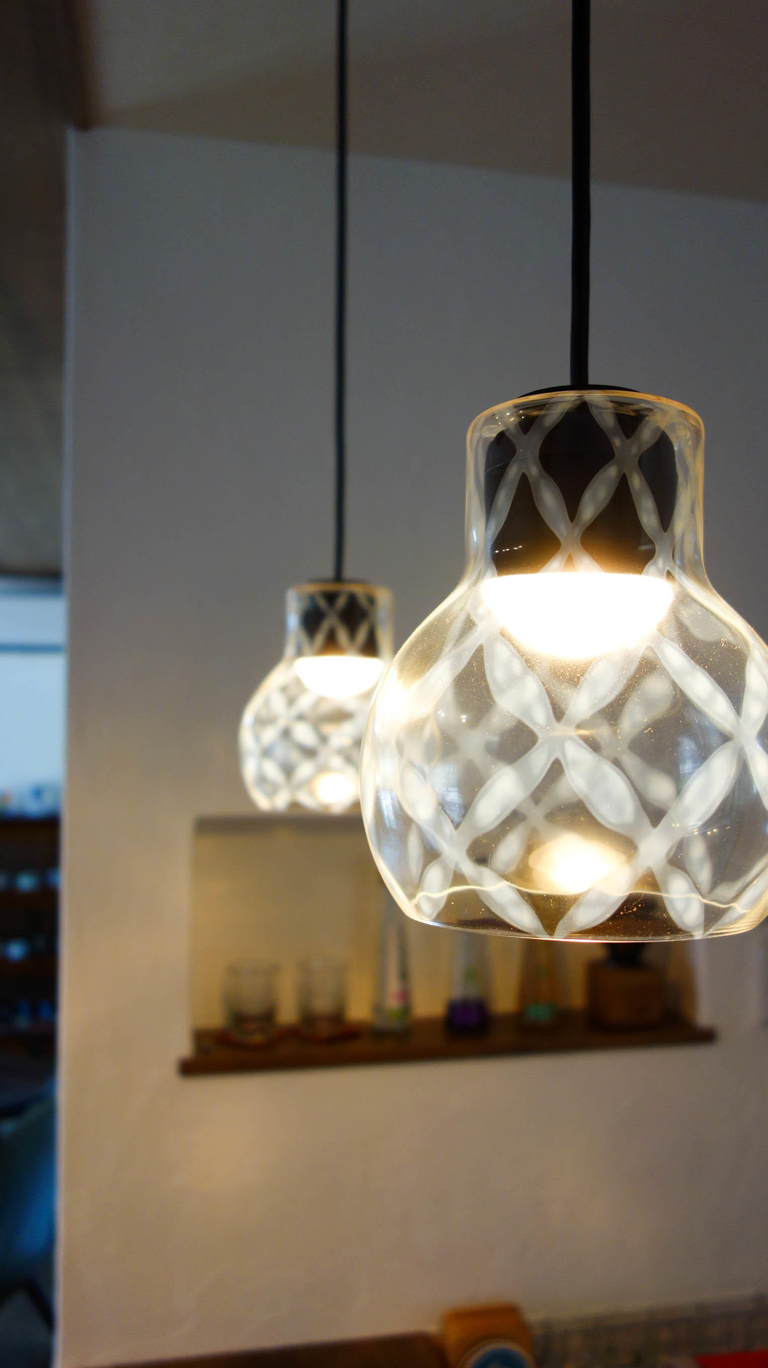 こだわりの照明。昼と夜の照らし方が違い、雰囲気が変わります。その日のその時の気分に合わせて、照明で楽しめます。