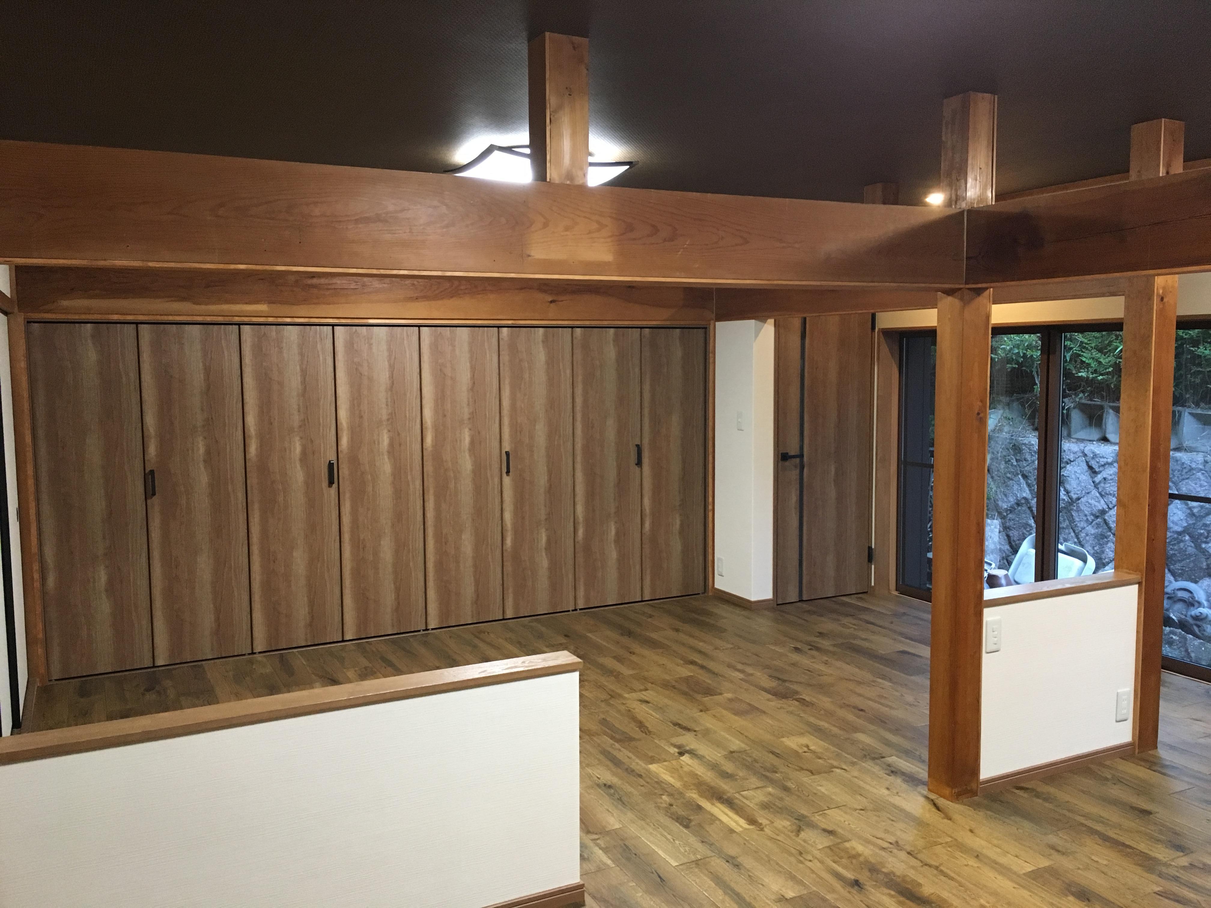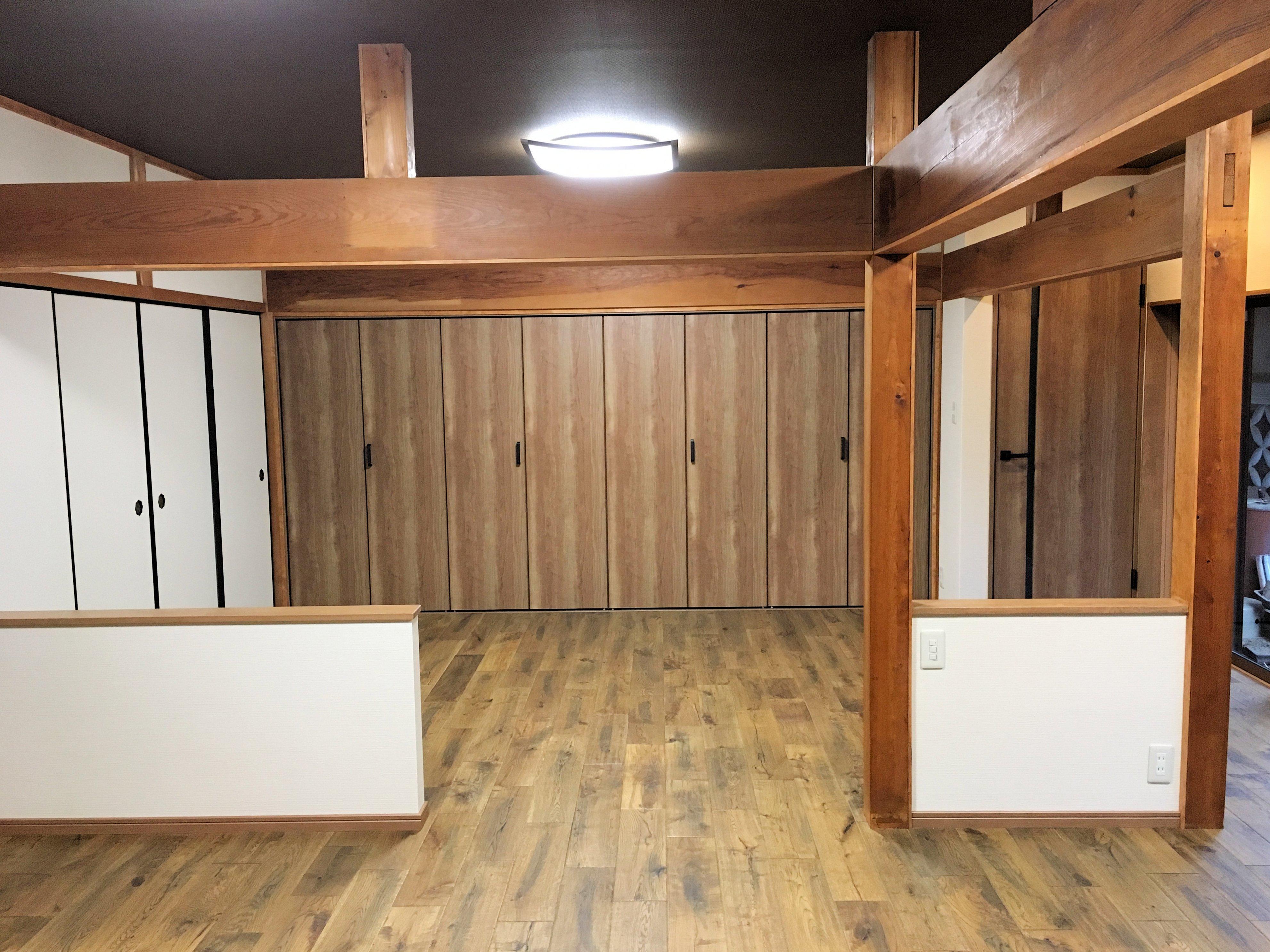 古い和室をリフォームしたいとのご依頼。壁を抜き広々とした空間をつくり、古民家風にリフォームしました