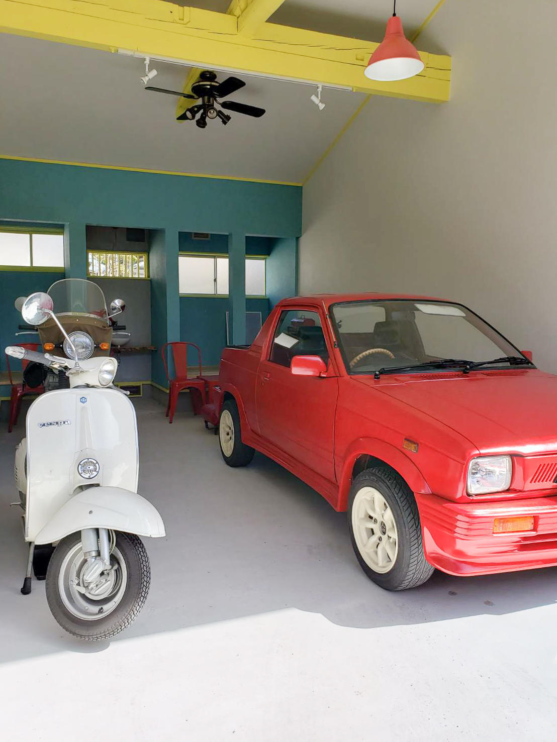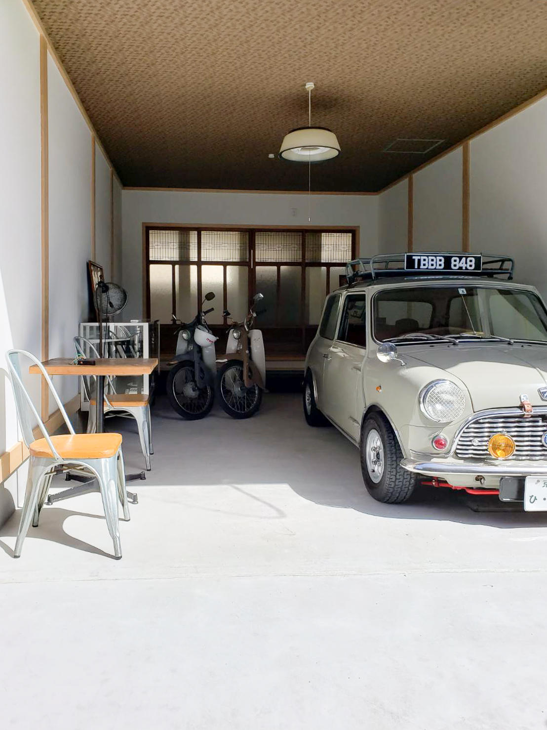 古くなったアパートを改修し、大好きな車を楽しむ空間にしたいとご相談いただきました。 アパートの居室部分を改装し、空間をつくりました。 隣同士でイメージの違う2つの空間。 2つの空間をテーマを決め、遊び心いっぱいのワクワクできるスペースが完成しとても満足していただけました。 見ているだけでワクワクできる素敵な場所になりました。