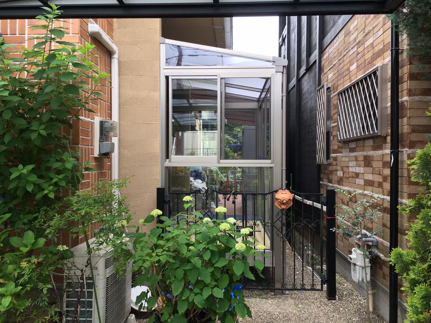 奥様のご趣味の作業場や荷物の収納場所として、お部屋を広くされることをご希望されていました。 増築されることも考えられましたが、空間を拡げるのにおススメのサンルームをご提案させていただきました。