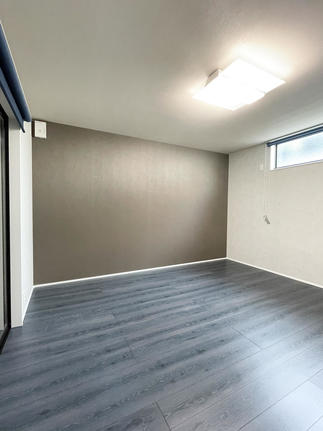 新しく建築した、はなれの内装。グレーとブラックで統一されたインテリアで、憧れるかっこいい隠れ家が完成しました。
