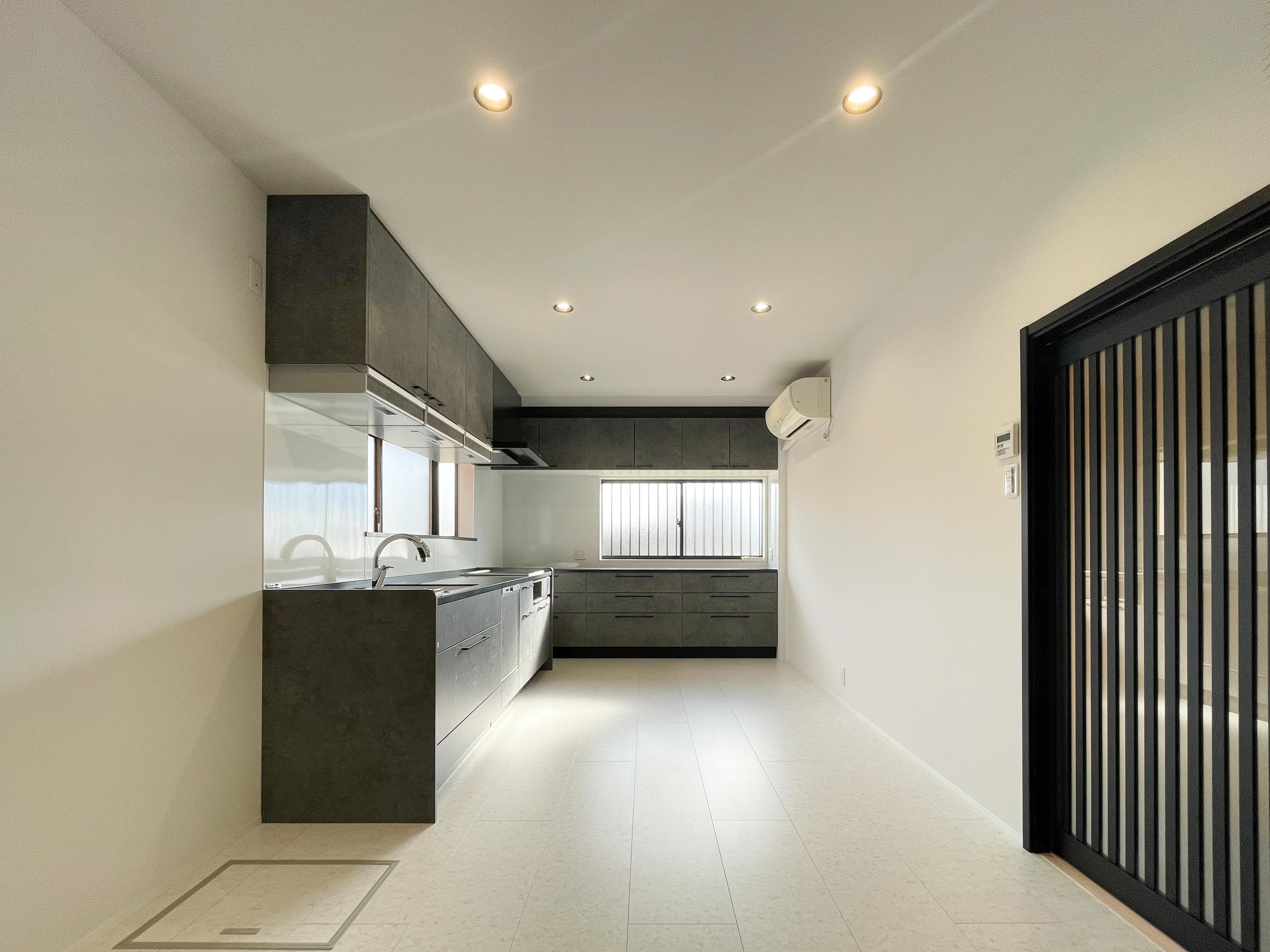 築40年のご自宅のLDKをリフォームしたいとご相談いただきました。キッチンやリビングは奥様が1番長くいる空間。奥さまが、ずっと憧れていたというホテルライクの様な空間にリフォームしました。 モノトーンでかっこよくまとまったLDKで、楽しく素敵な時間を過ごしてください。