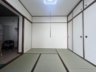 古くなった畳と、汚れが目立っている壁紙を綺麗にしたいというご依頼でした。 畳の芯は綺麗だったので表替えにし、壁紙は一部表面にカビが生えていたので防カビ処理をし、防カビ使用の壁紙を使用しました。 また、畳部分の下地が全体的にぶかぶかしていたので、お一人でお住まいのお母さまに安心して生活していただけるよう下地の修繕も一緒にさせていただきました。