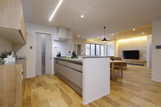 キッチンは最初に提案頂いたリシェルを選びました。 セラミックトップは傷や変色などを気にせず使っていても綺麗な状態が保てるのでとても楽です。 フルオープン対面で解放感がありながらも造作カウンター立上げをつくってもらったので、手元だけ隠せて便利です。
