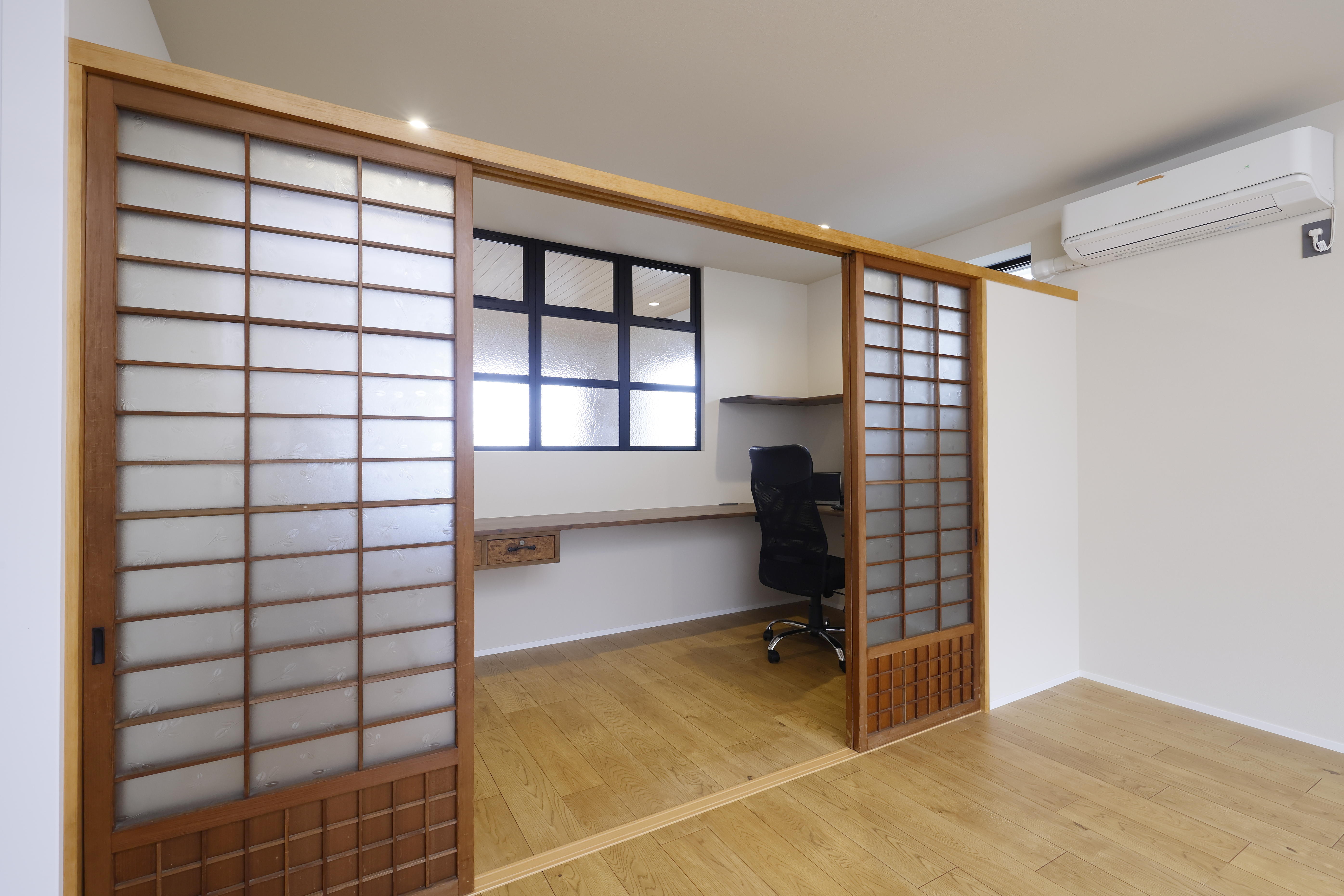 お家のメンテナンスが必要になってきており、少しずつ修繕で直していくのではなく、おもいきってフルリノベーションをしようとご相談くださいました。 ご主人と奥様のこだわりと好みのテイストが少し違っていた為、お2人共に納得していただけるお家にしたいと、プランを考えるところに1番気を付け時間をかけました。 また、ご主人からは先代より譲り受けてきたものを大切にし、活かせるところは活かしたいというご要望もあり古い建具をいくつかインテリアに取入れさせて頂きました。 見た目だけでなくしっかりと開口部の断熱改修を行うなど、地元の工務店として責任をもって性能面でも改修のご提案をさせて頂いたのもポイントかと思っています。
