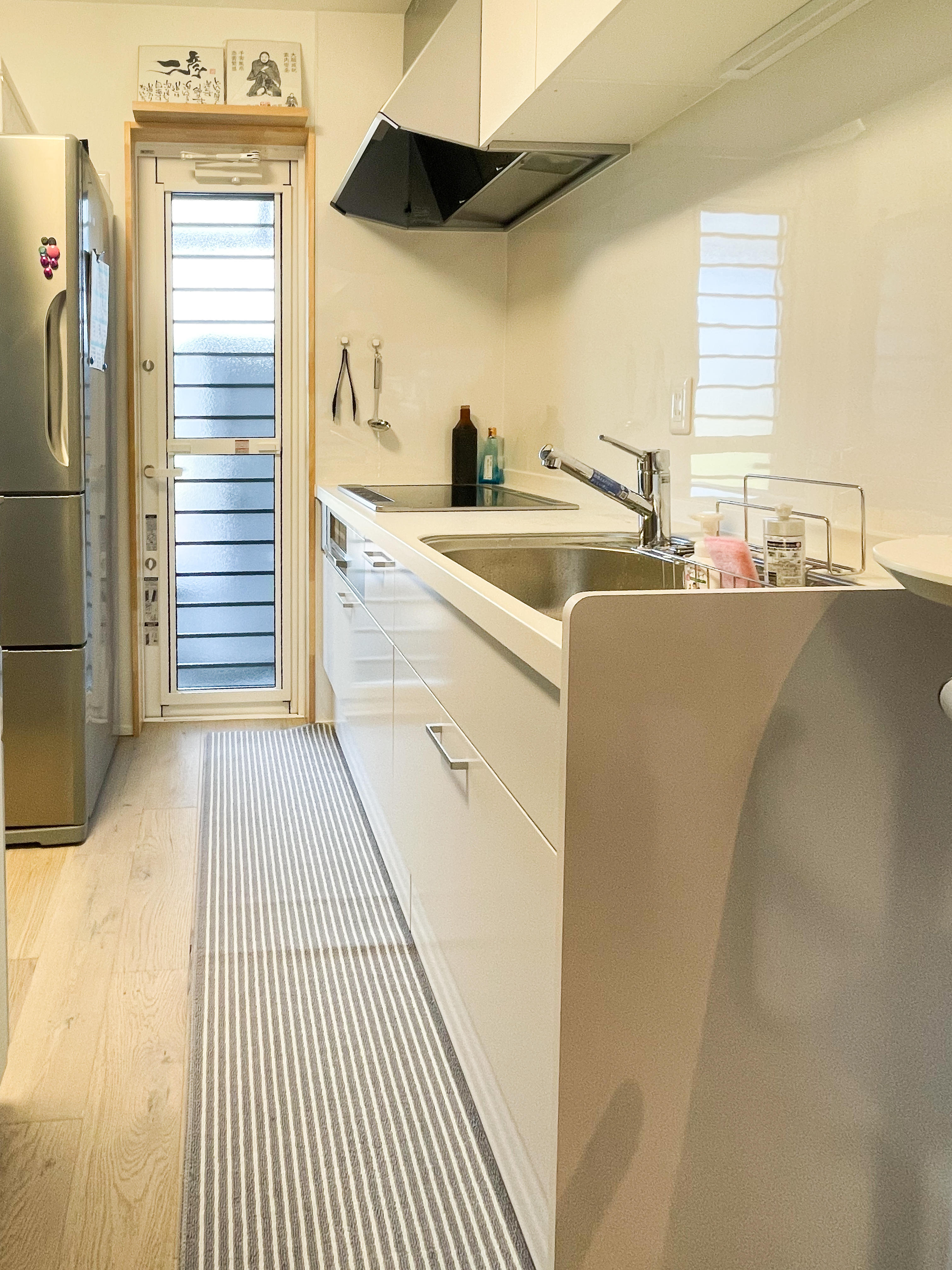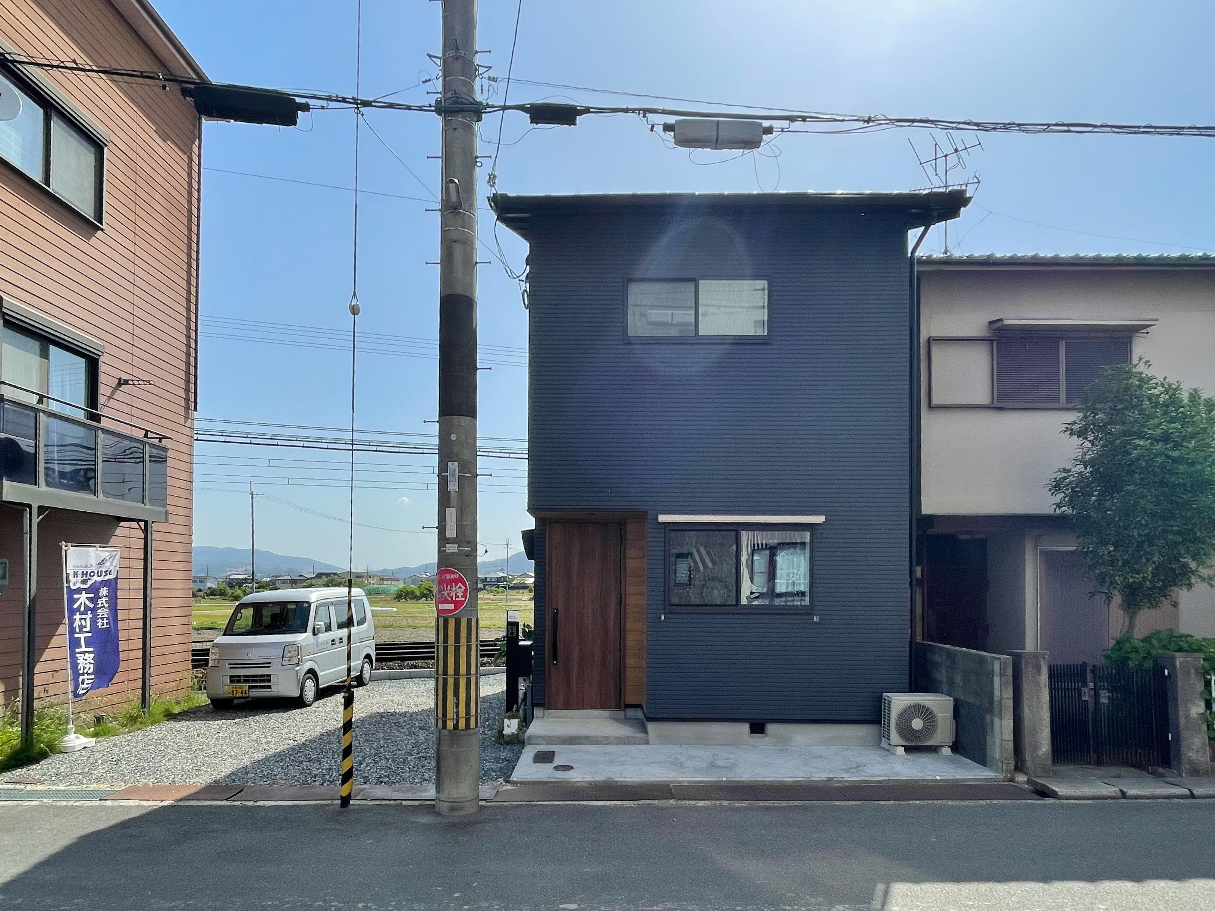 30坪弱の横並びの土地に出会いました。半分を駐車スペースとし残る1つの建物をフルリノベーションすることにしました。 間取りはそのままですが、断熱にこだわり、快適に過ごせる空間に生まれ変わりました。 外観もネイビーのガルバリウム鋼板とブラックのサッシ、木目の玄関扉でおしゃれで目を惹く外観に大変身です。