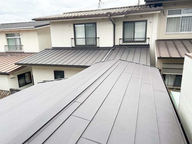 カバー工法(重ね葺き)スーパーガルテクト(シェイドブラウン)遮熱性・断熱性がアップし、お家の性能アップにつながります。