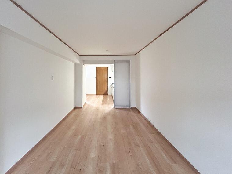 玄関から入り、洋室を抜けてキッチンへの動線があります。間仕切りには、光が繋がるようにガラス戸を選びました。床:ラシッサDフロア(LIXIL) メープル間仕切り:ラシッサS(LIXIL) シャイングレー
