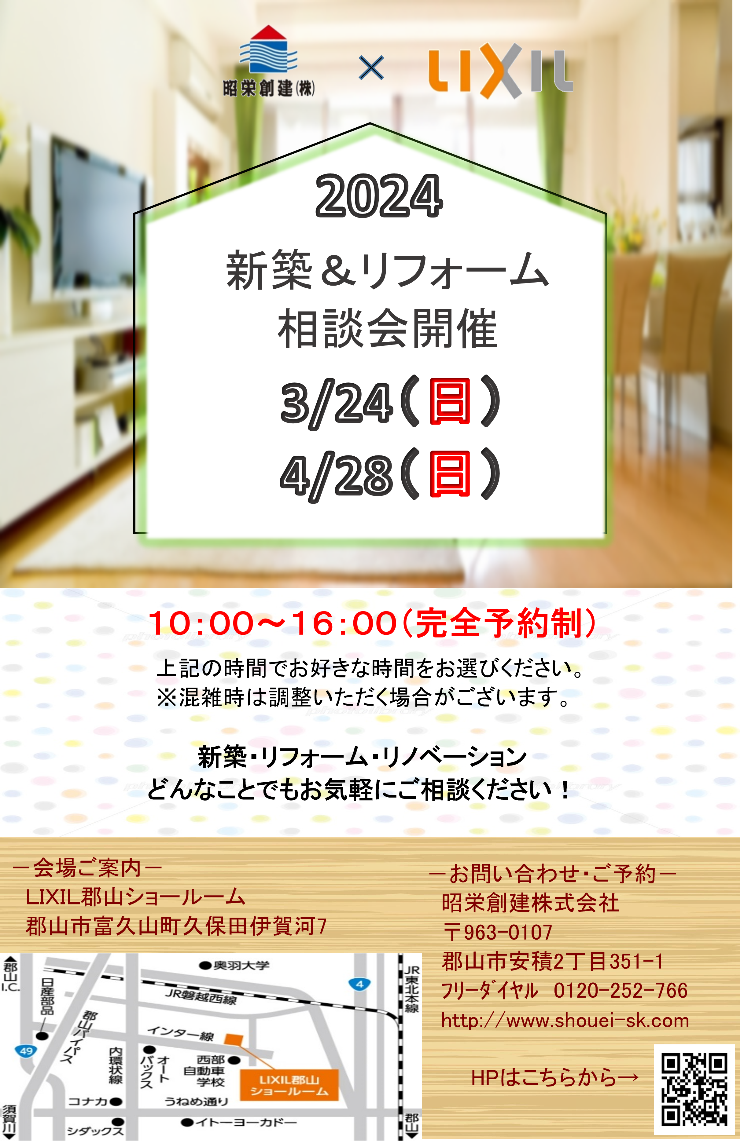 3月24日(日)・4月28日(日)、新築&リフォーム相談会を行います!!
