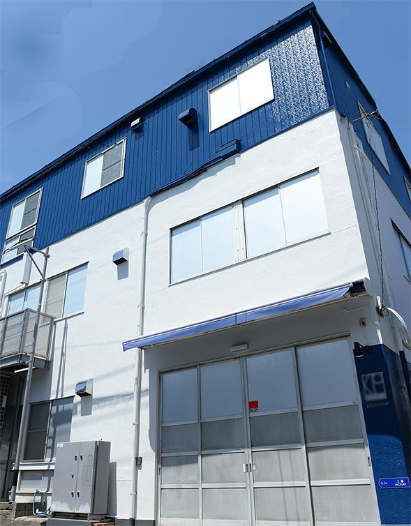 工場の外壁塗装。white × blueのコントラストが素敵な塗装になりました!sign bordもデザイン性のあるおしゃれな看板に!