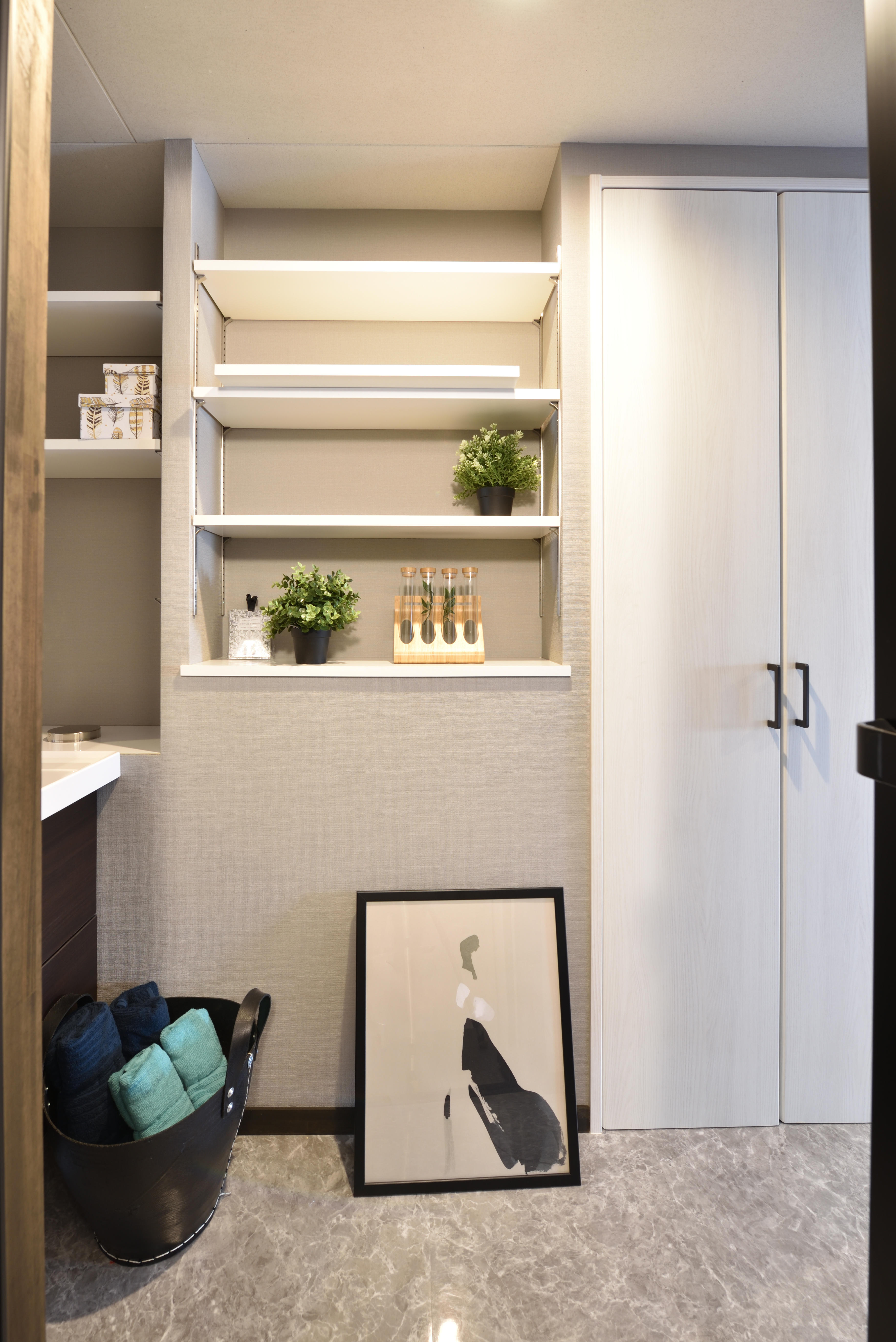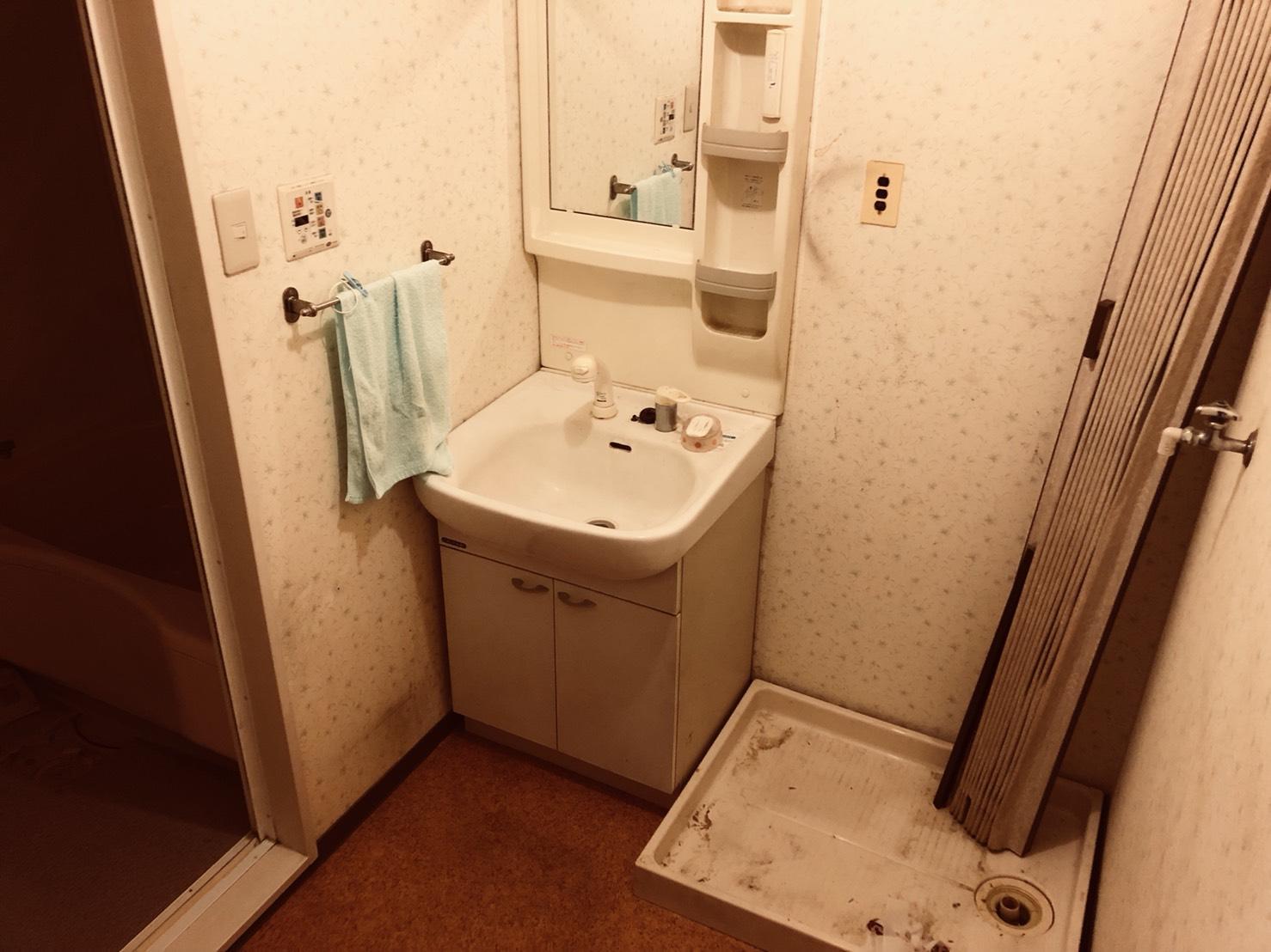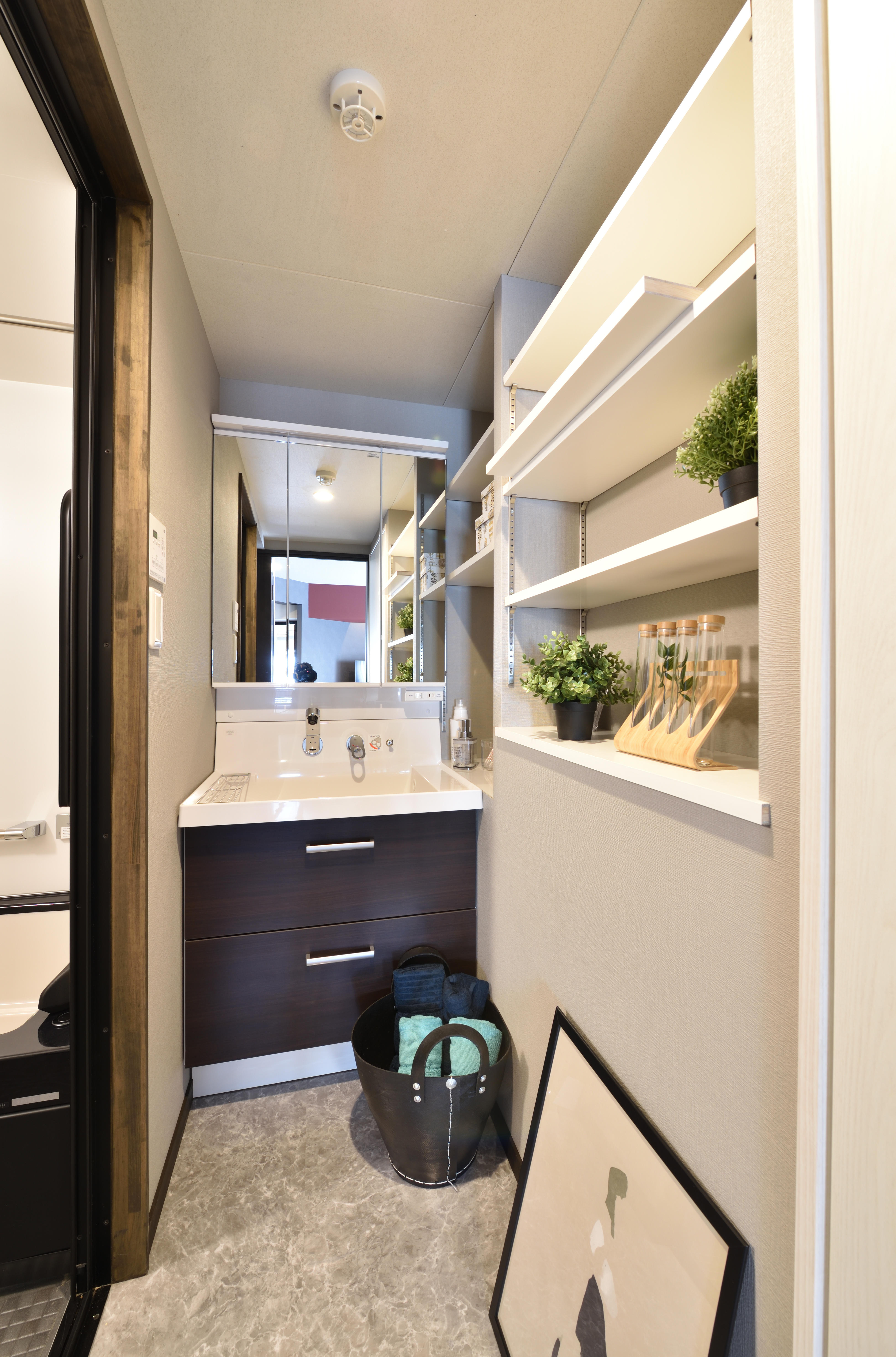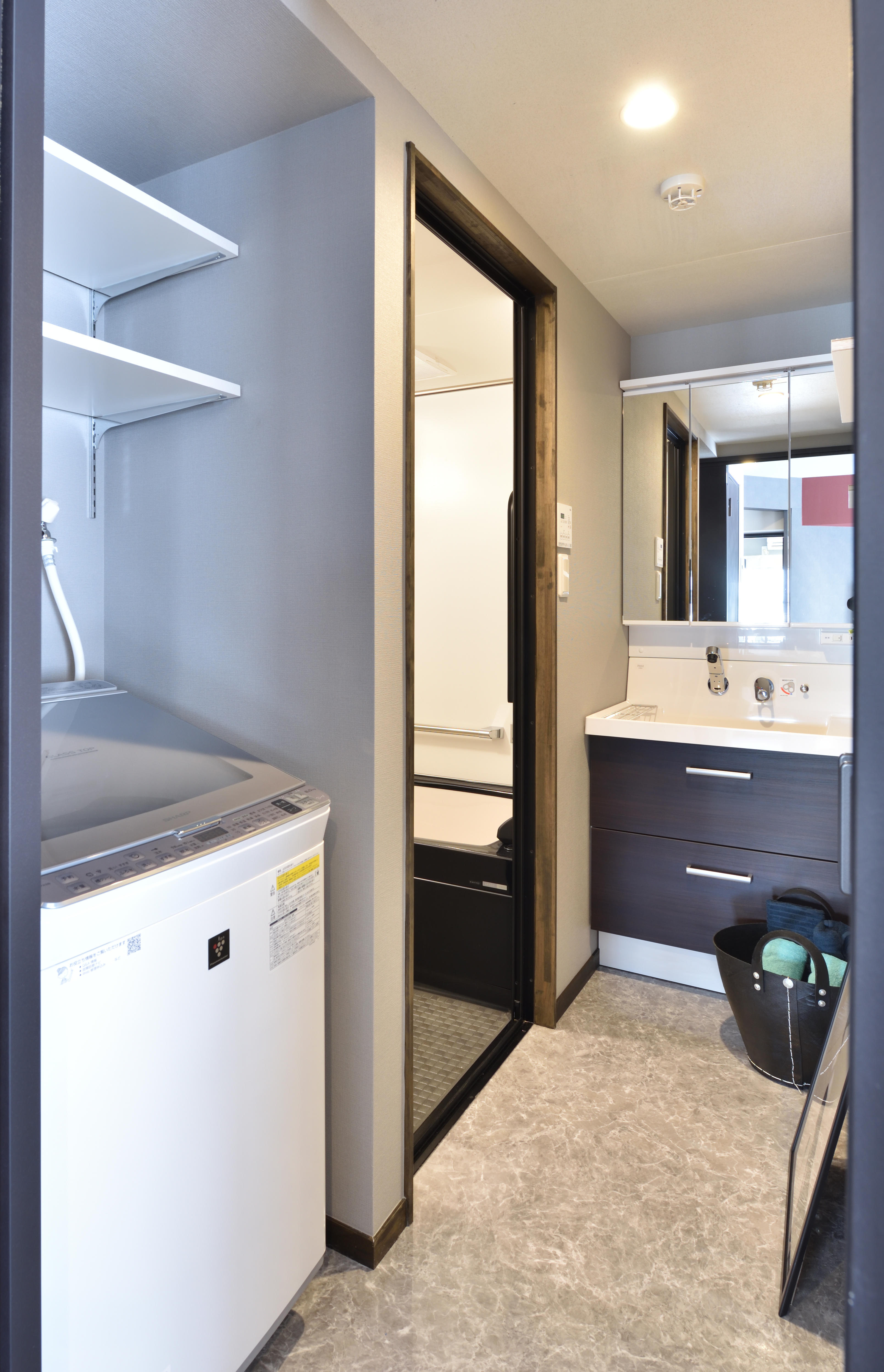 フルリフォームをしたマンション。洗面脱衣所のBeforeとAfterです。収納もたっぷりです。