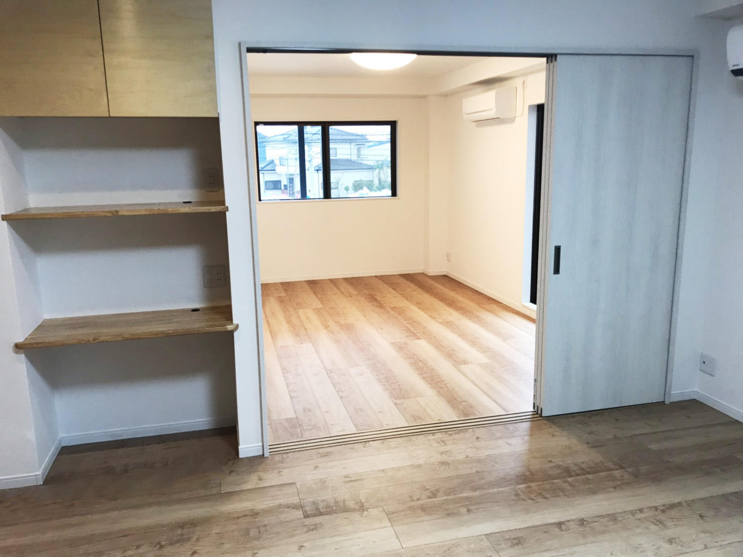 倉庫の一角に1LDKを設置しました。内観だけみるとまるで新築です。