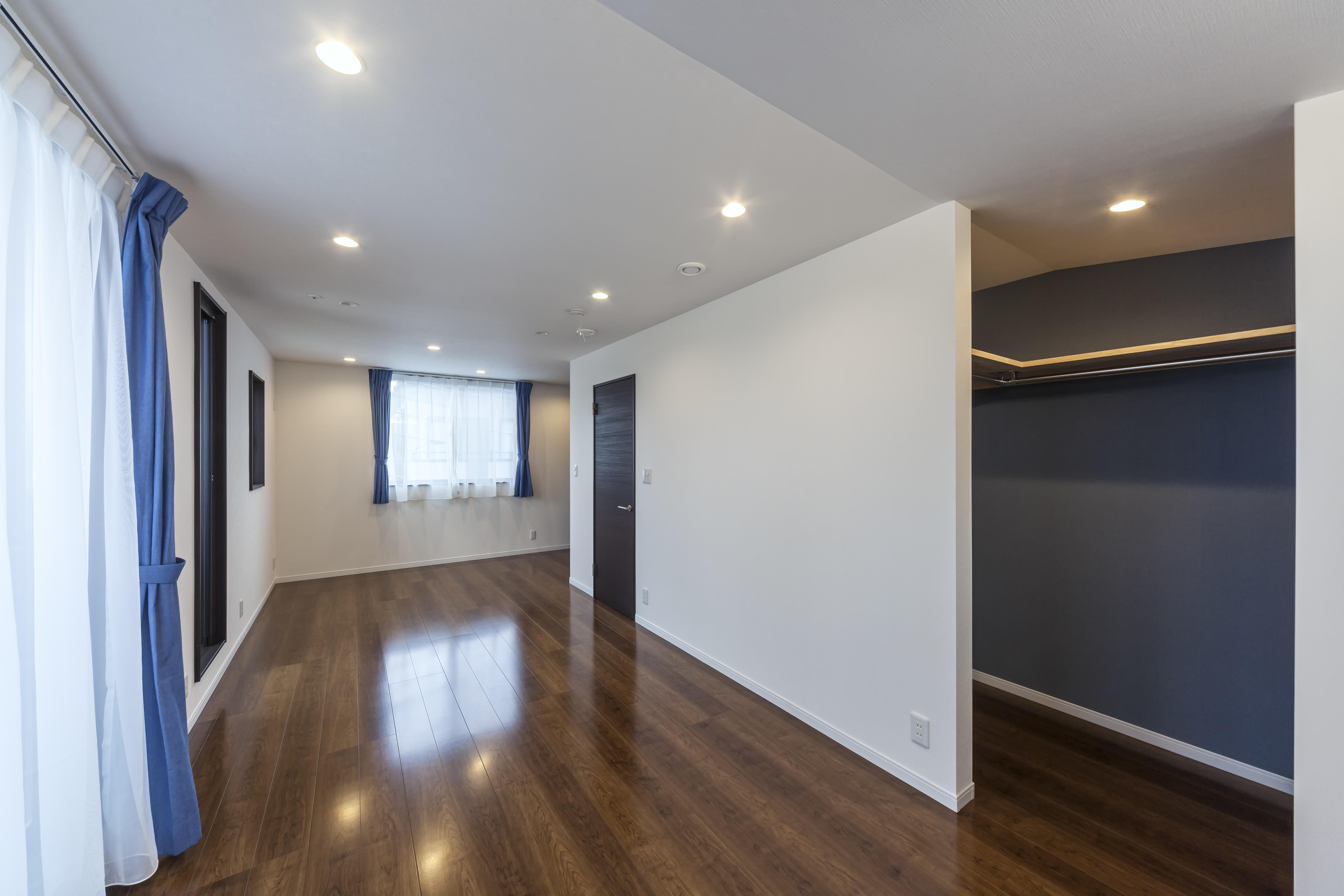 お子様の成長に合わせて、将来的に部屋を間仕きることも考えた大きな寝室。