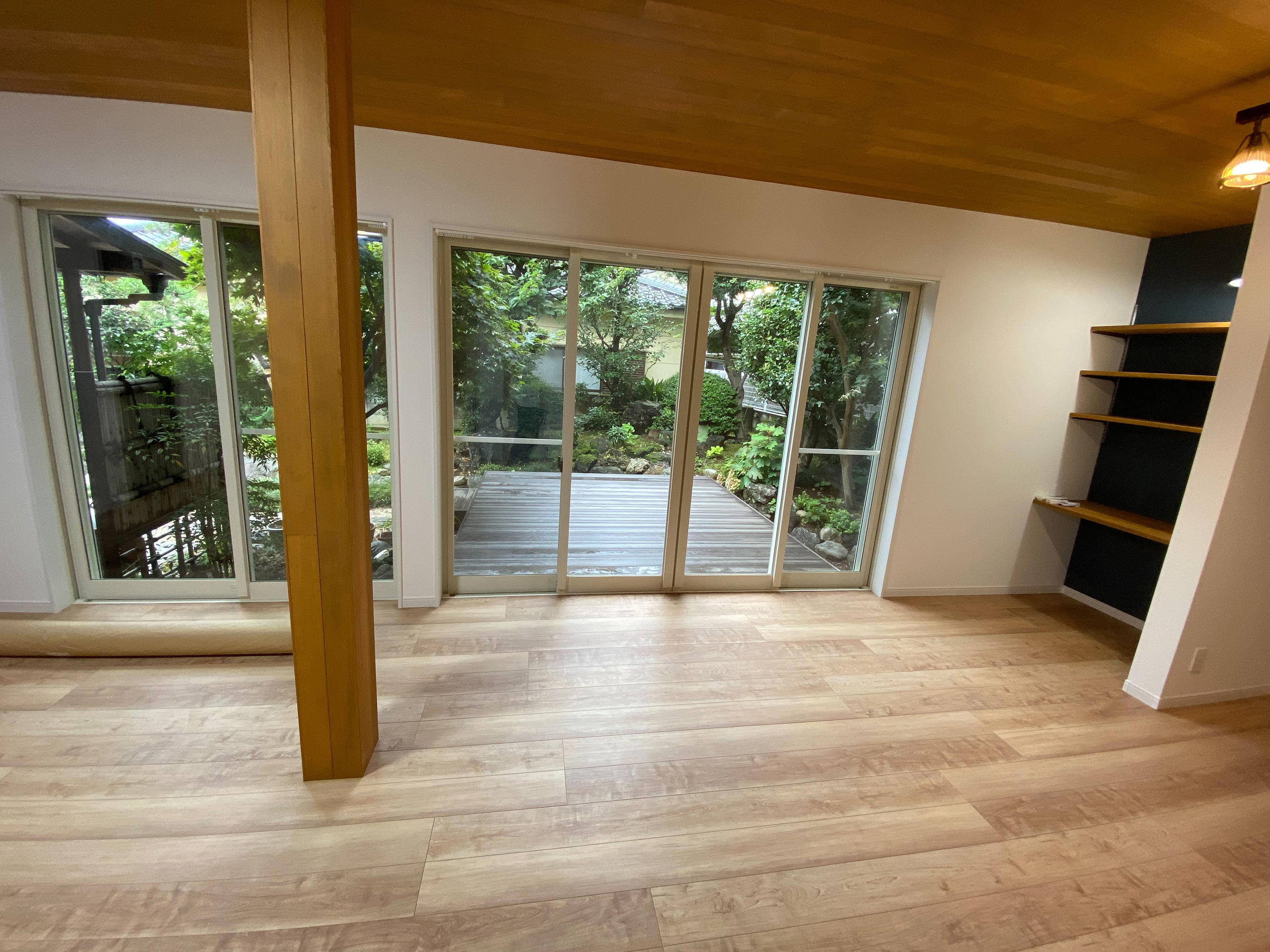| リフォーム部位 | 玄関、キッチン、リビング、和室から洋室、お風呂、トイレ、洗面、ウッドデッキ |