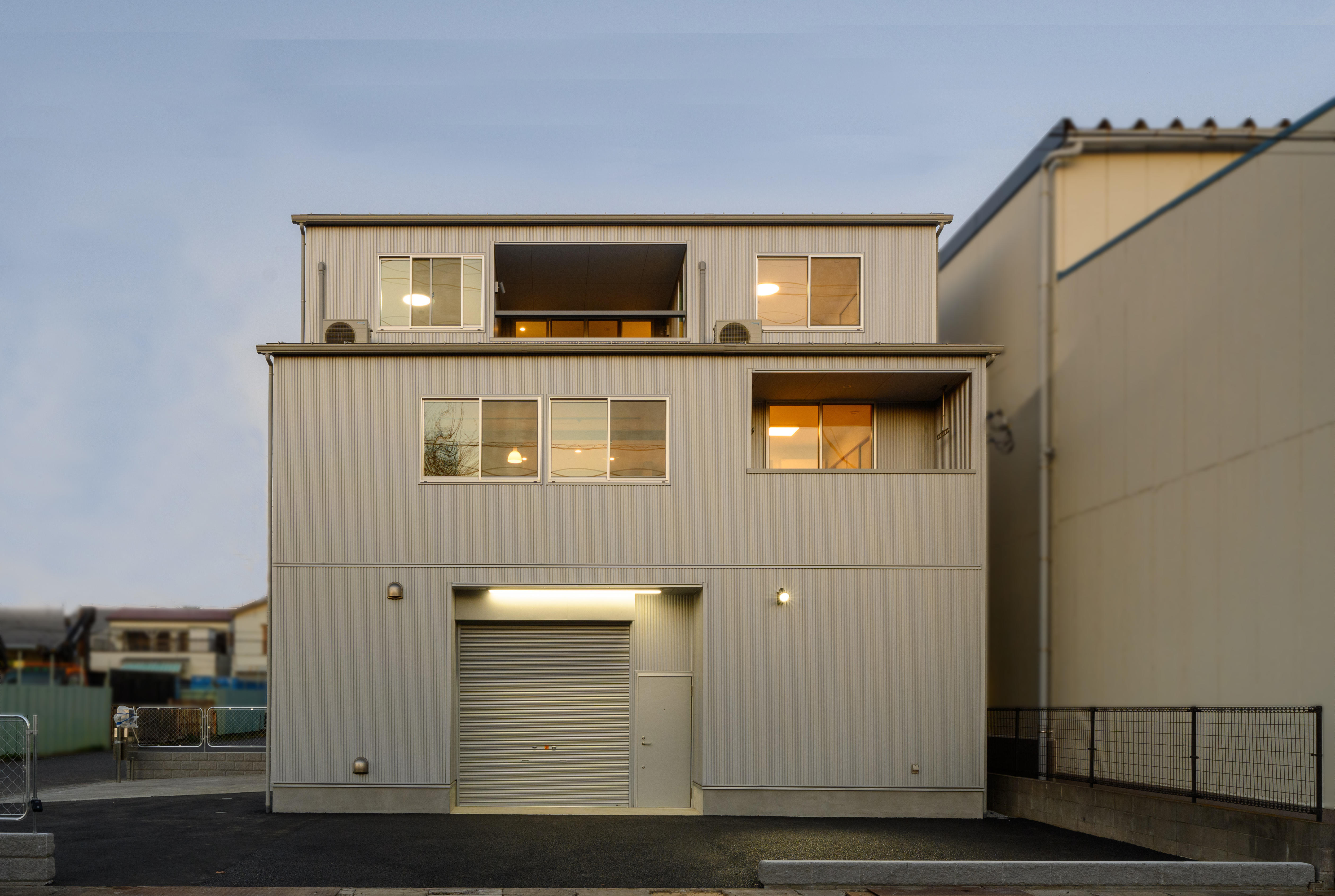 シンプルな建物の中に「のびのびした生活」と「大好きな仕事」をぎゅっとつめこんで。通期時間10秒の夢が叶う工場兼住宅です。 1階には柱のない大空間を計画し、様々な機械などを自由にレイアウトできるようにしています。 長期使用構造等確認により環境性能高く計画しています。 まるで大好きなお道具箱みたいな愛着のわく供用住宅です。