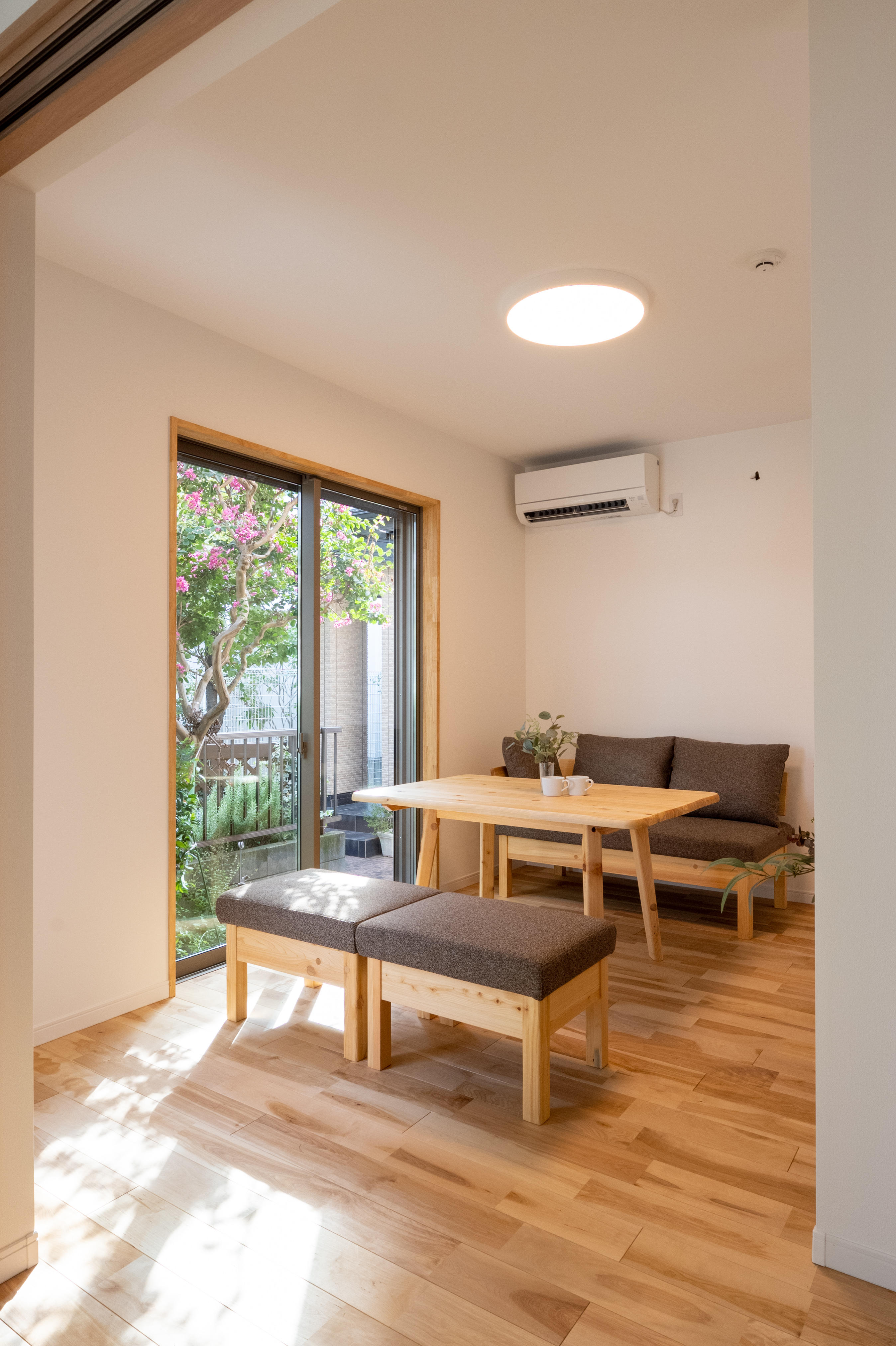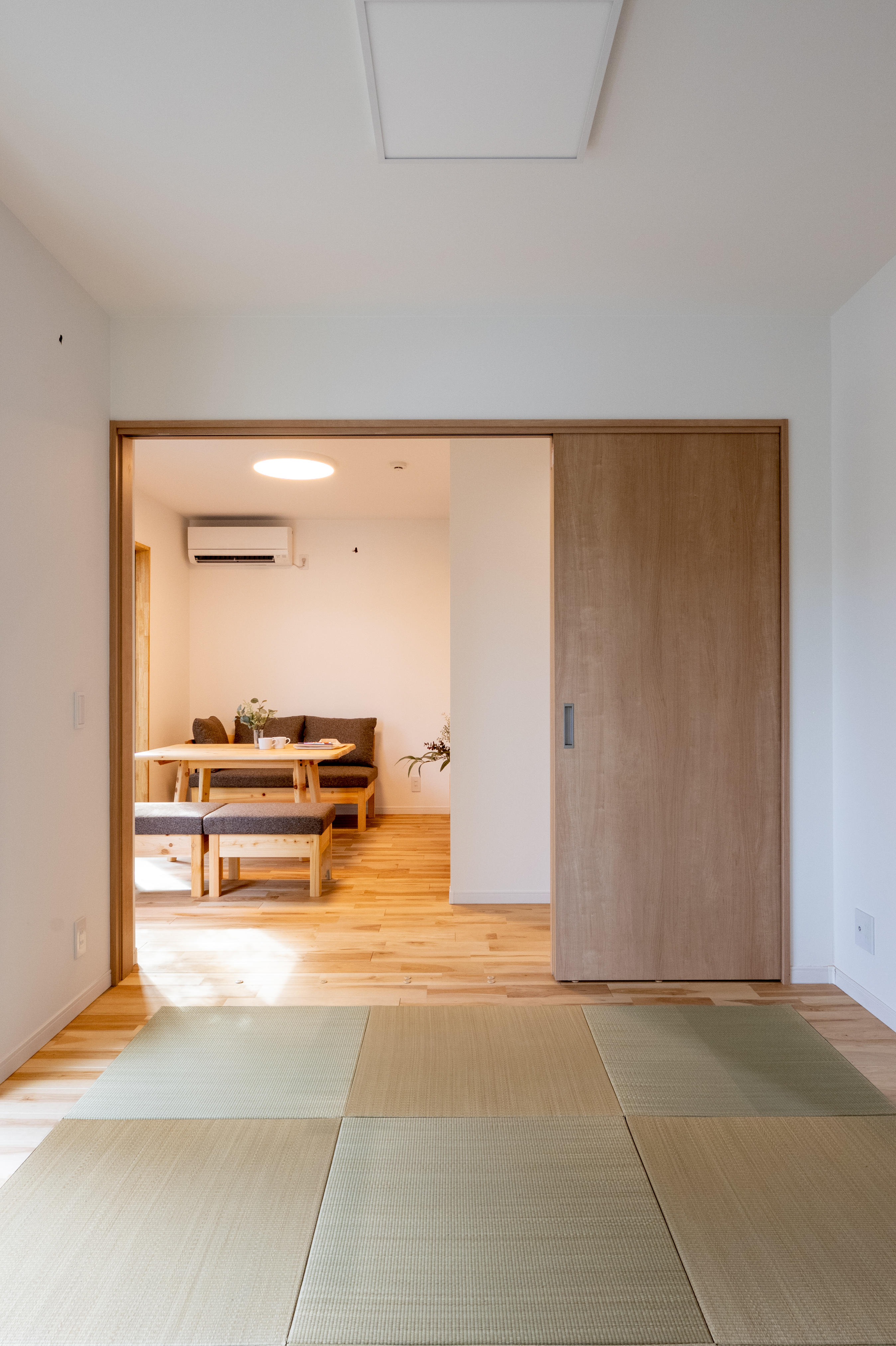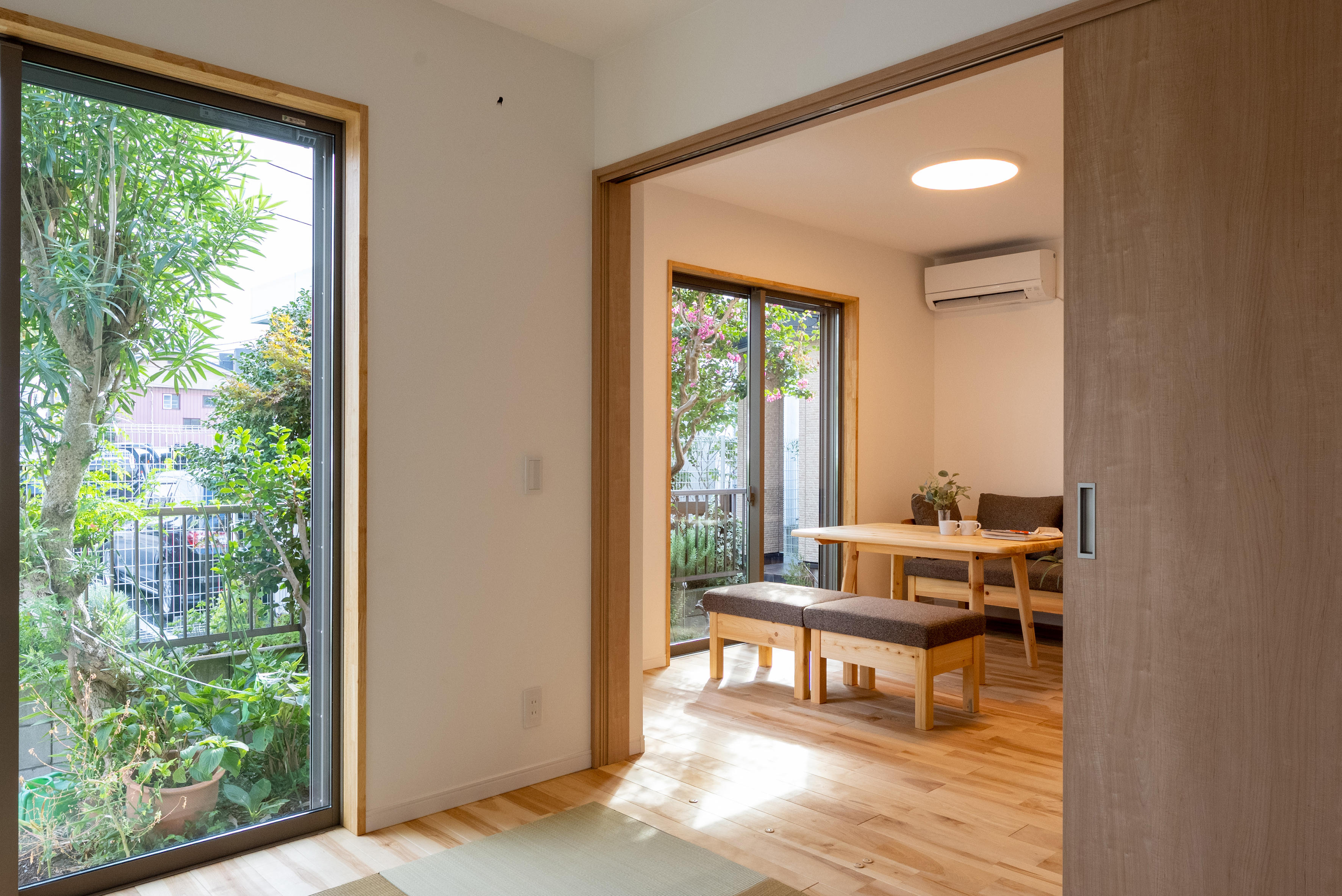 和室と繋がるリビングは、お互いのコンパクトさを補いながら、フレキシブルに使える空間を演出しています。