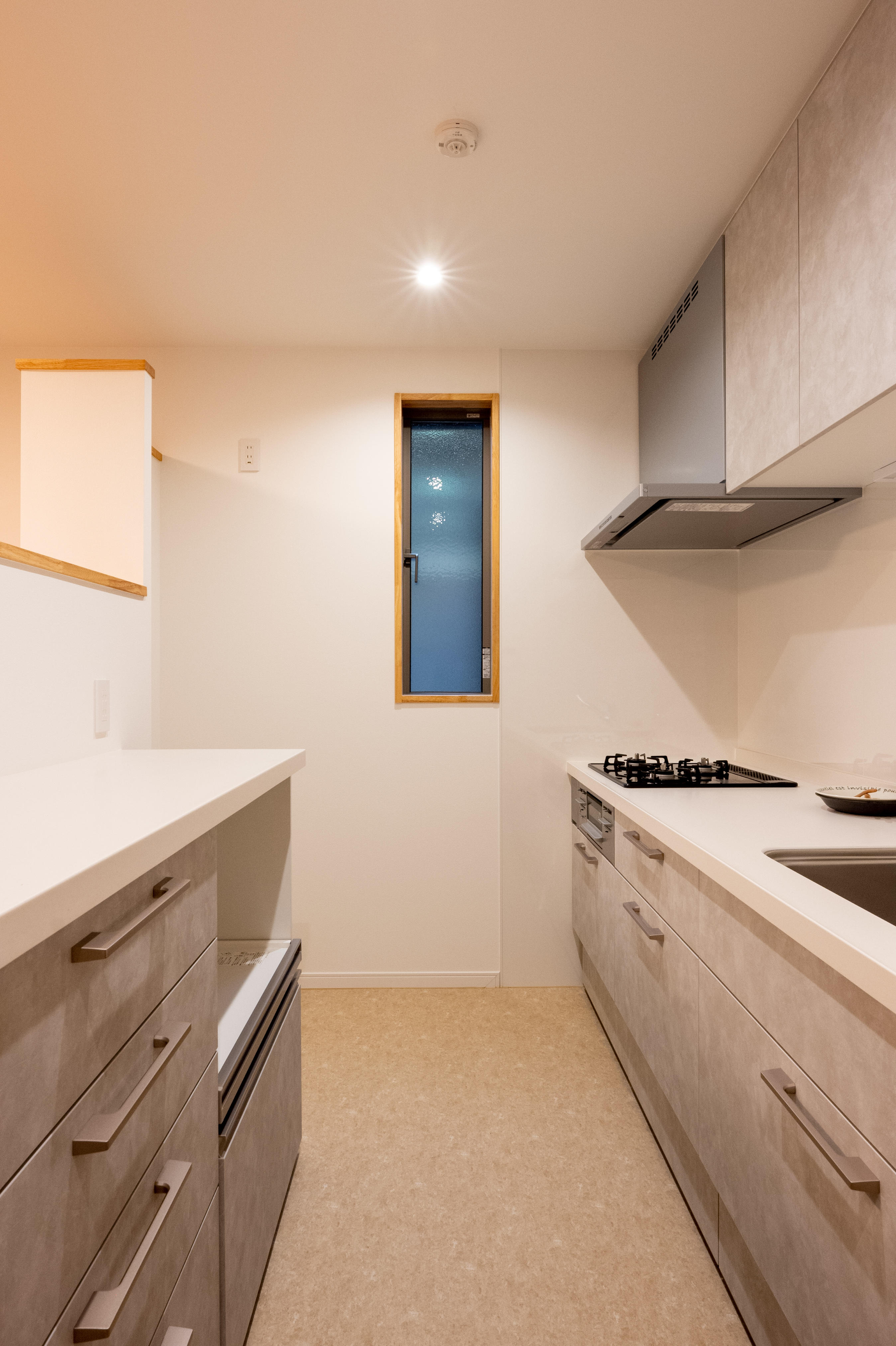 コンパクトながらも動線を熟慮したホッとする住まい。親世帯は路地状スペースを経由するのびやかで自由な計画です。