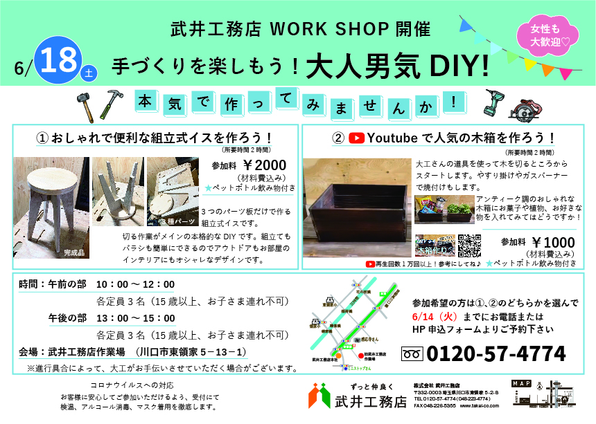 - 【場 所】武井工務店作業場(川口市東領家5-13-1)