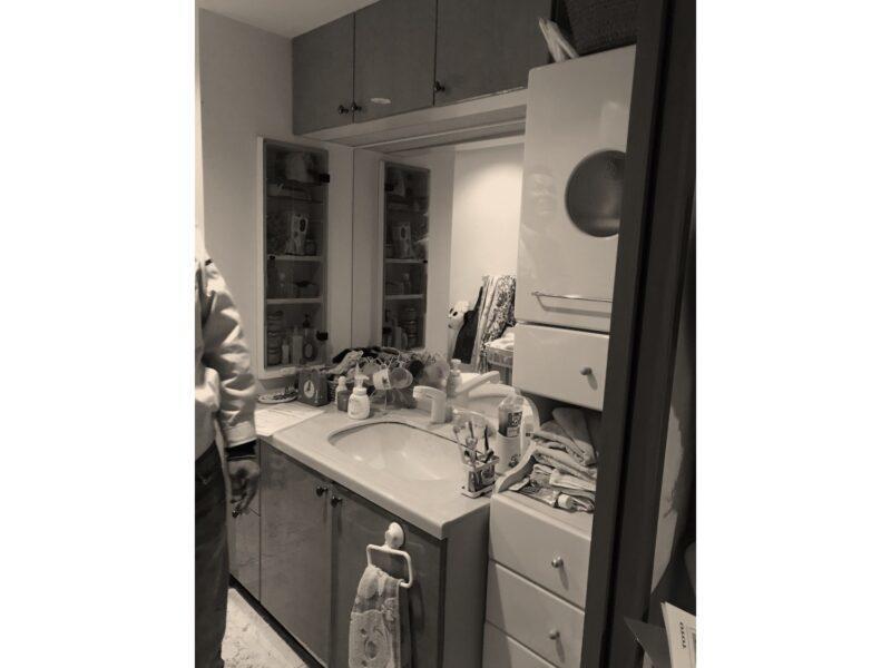 HPを見られたお客様からのリフォームの依頼でした。洗面化粧台の横にはトールキャビネットがあったのですが、今回は造作棚として新たに作りました。