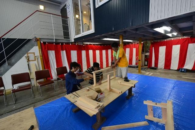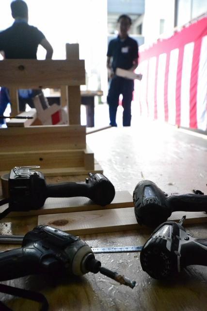 電動工具のコツなどもお教えしながら、縁台を作成してもらいました。