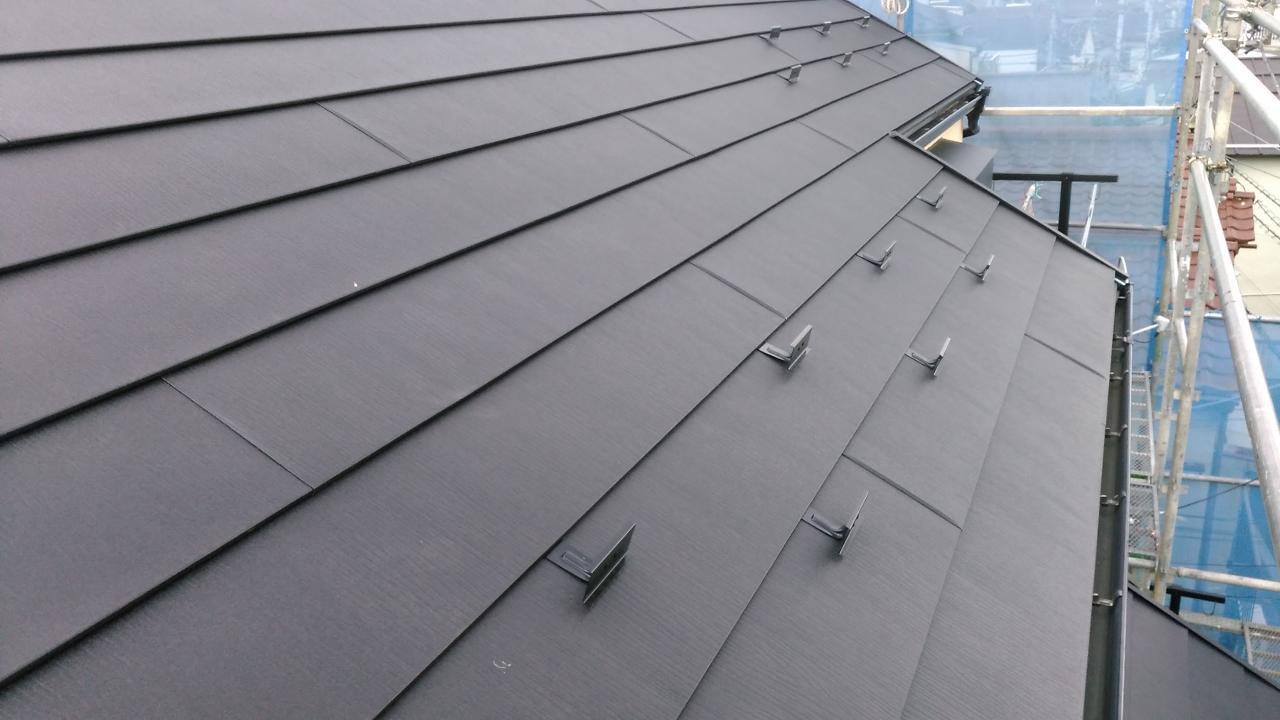 今回は、ひょう害で屋根が割れてしまったとのことで、現地調査にお伺いしました。築年数から、屋根材にアスベストが含有されている可能性があるため、重ね葺き工法を提案させて頂きました。 断熱材が挟み込まれているため、断熱性のアップも見込まれます。