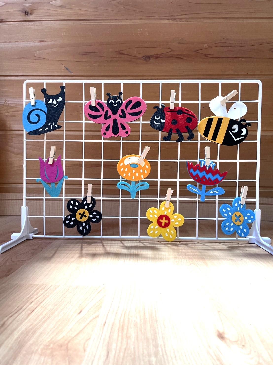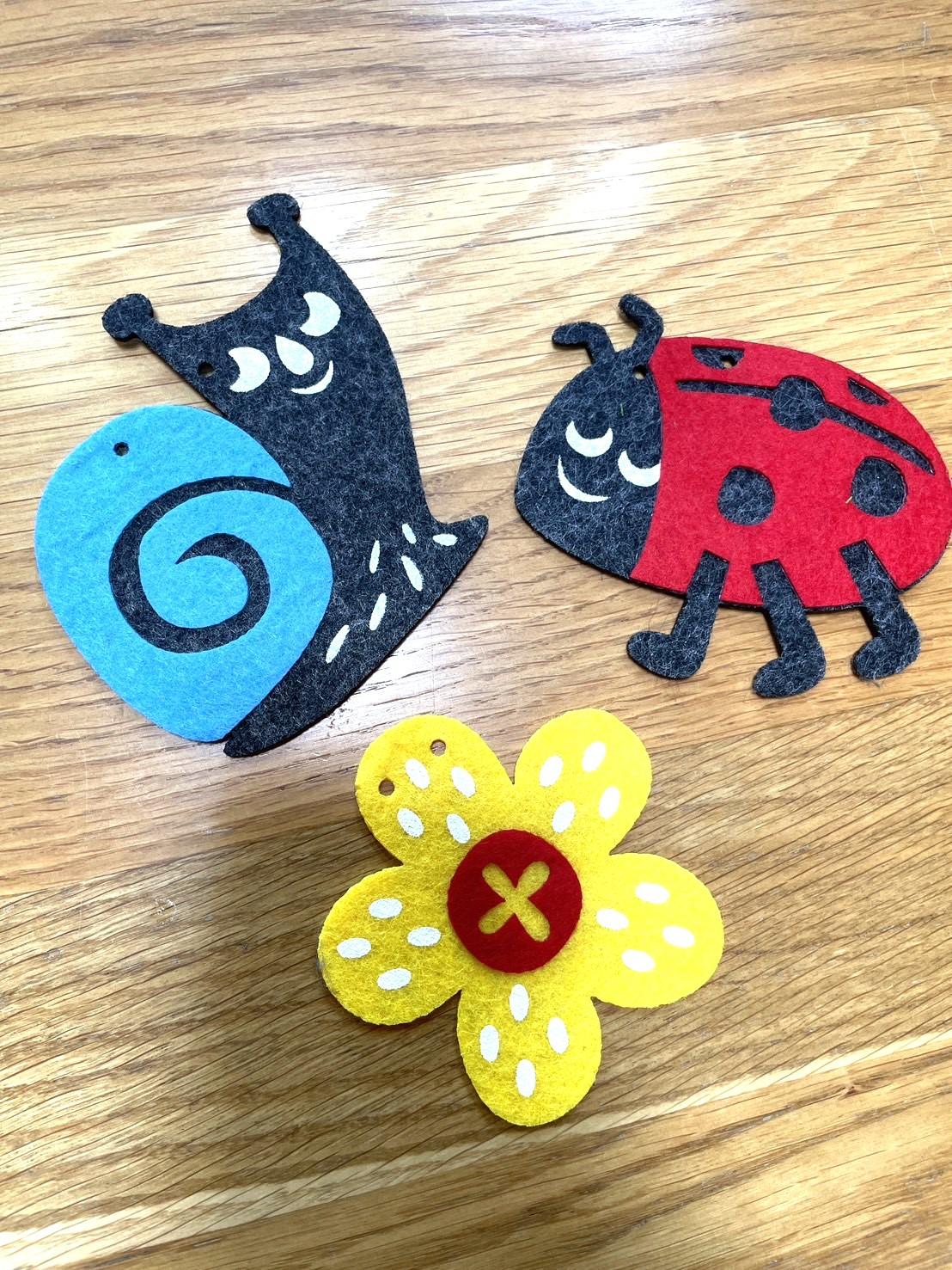 こちらはフェルトで出来ているカタツムリやてんとう虫、お花です♪