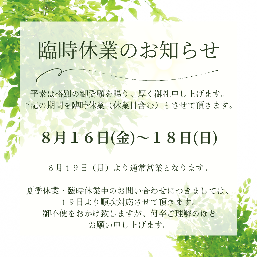 臨時休業のお知らせ
