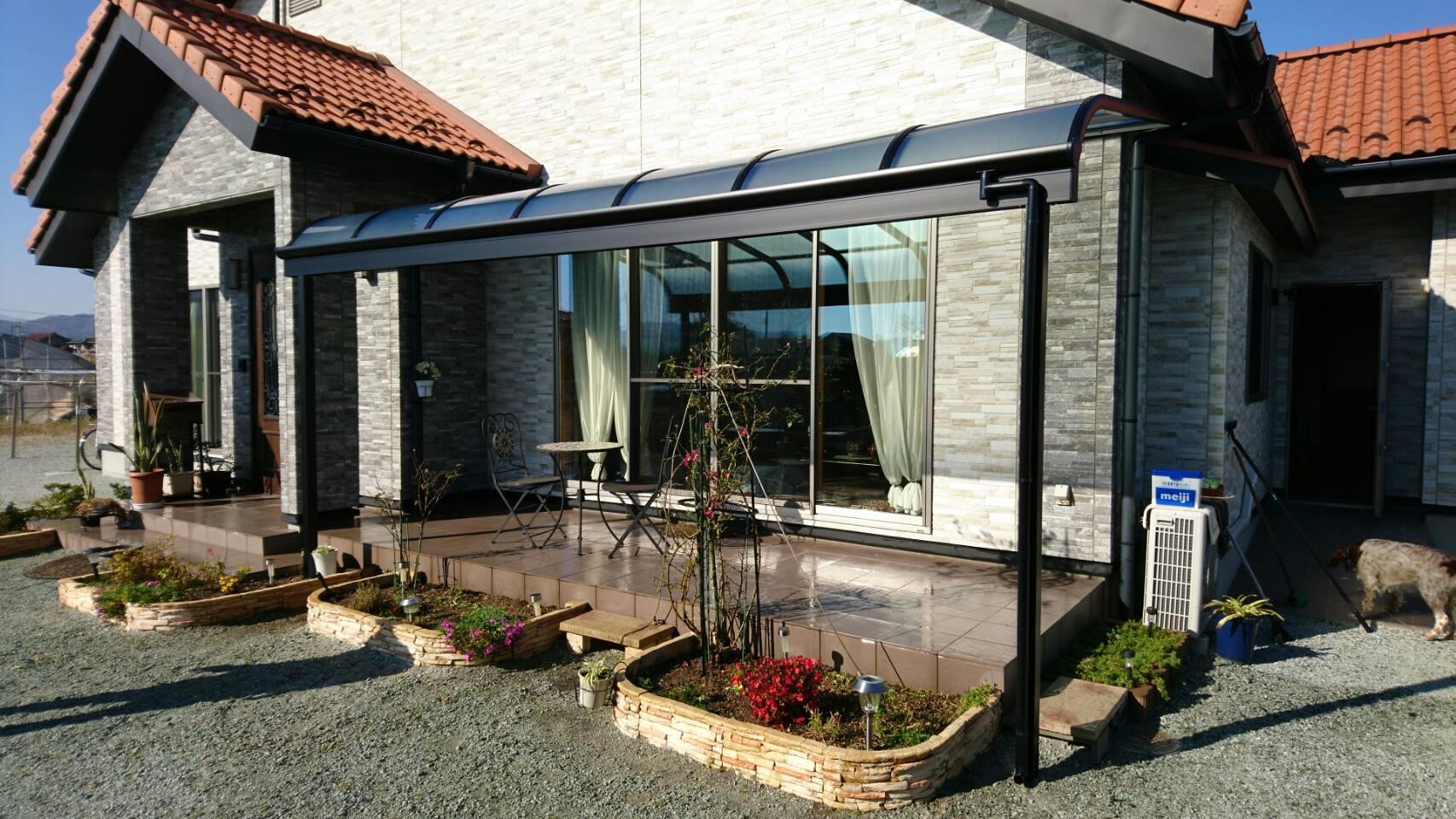 既存のテラスに屋根を取り付けたいとのお話を頂き、工事をさせて頂く事になりました。LIXILのスピーネを採用。熱線吸収ポリカーボネート材を使用しているので、紫外線を遮り、日射による室内温度の上昇を防ぎます。