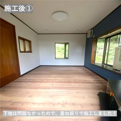 既存のフロアは日焼けでガサガサと傷みはあるものの、下地は問題なかった為、重ね張りで施工を行いました。