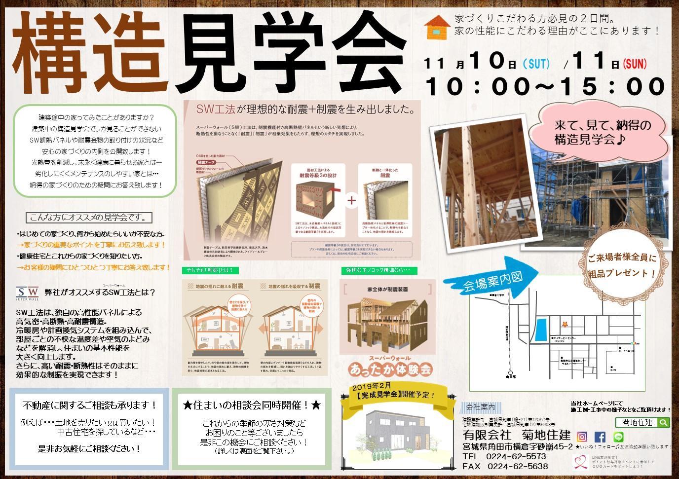 11/10(土)・11(日) 角田市角田字豊町にて新築工事中の構造見学会を開催致します!