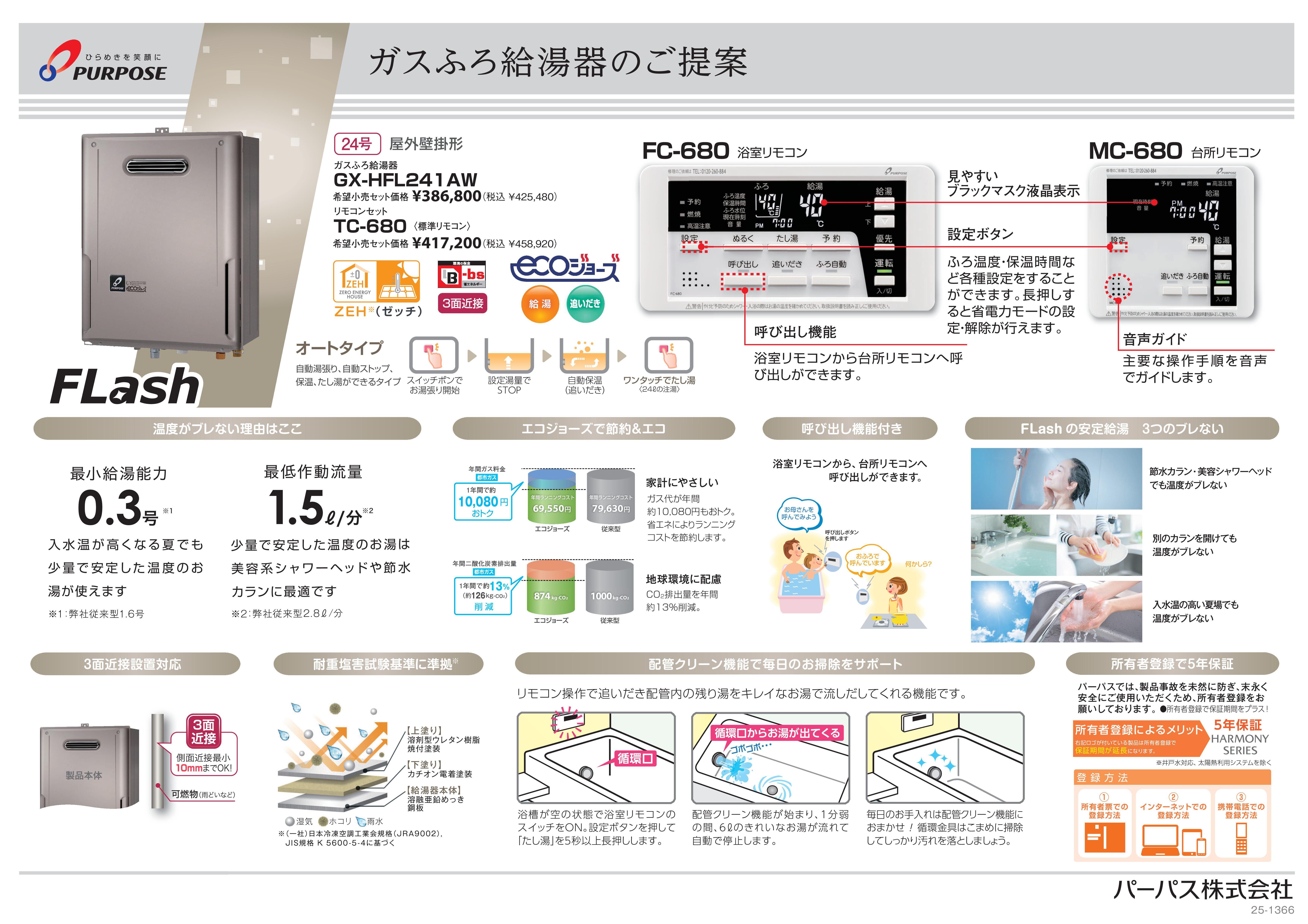 新設したガス給湯器は、パーパス エコジョーズ20号壁掛形 オートタイプ!