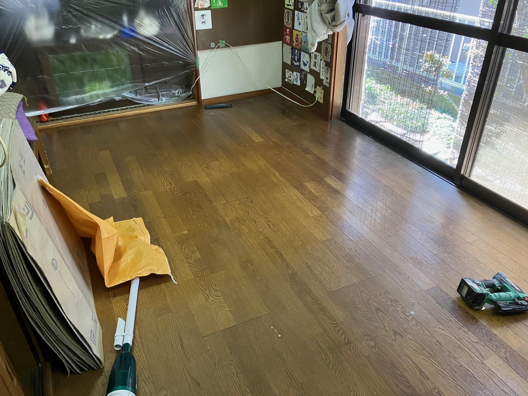 新しく張ったフローリングは