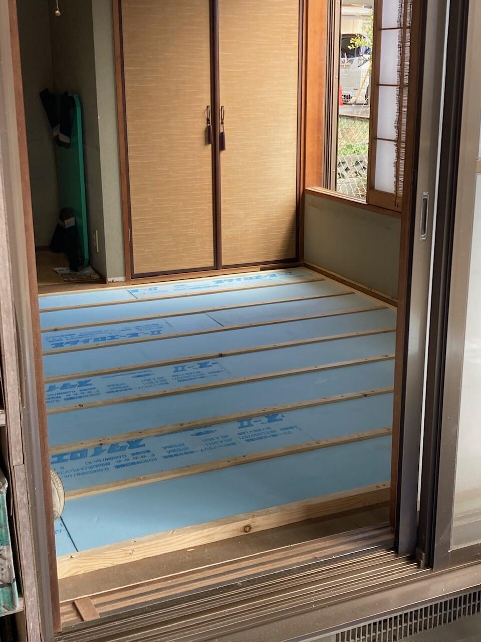 この上にフローリングを張っていきますので