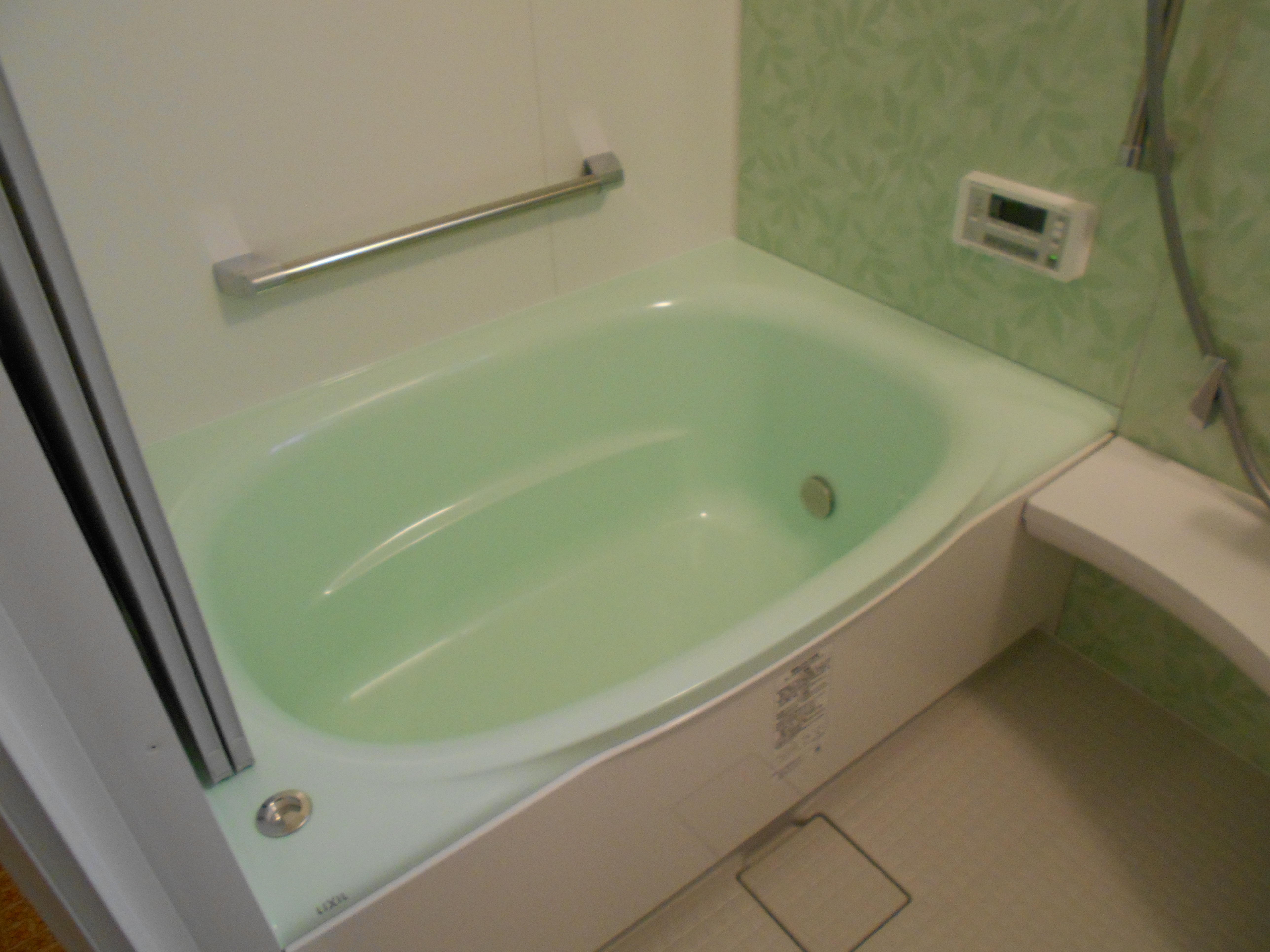 お母様の大好きな緑を取り入れました。 暖かく、安心して入れるお風呂へとリフォームし喜んでいただけて嬉しく思います。