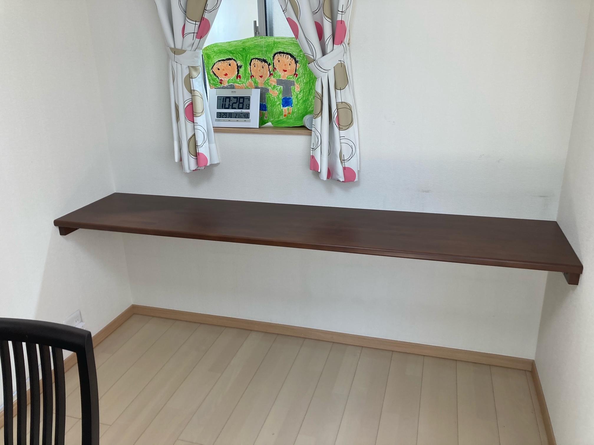 お子様が小学生になり宿題や絵を描くスペースが必要になりカウンター取付ました。