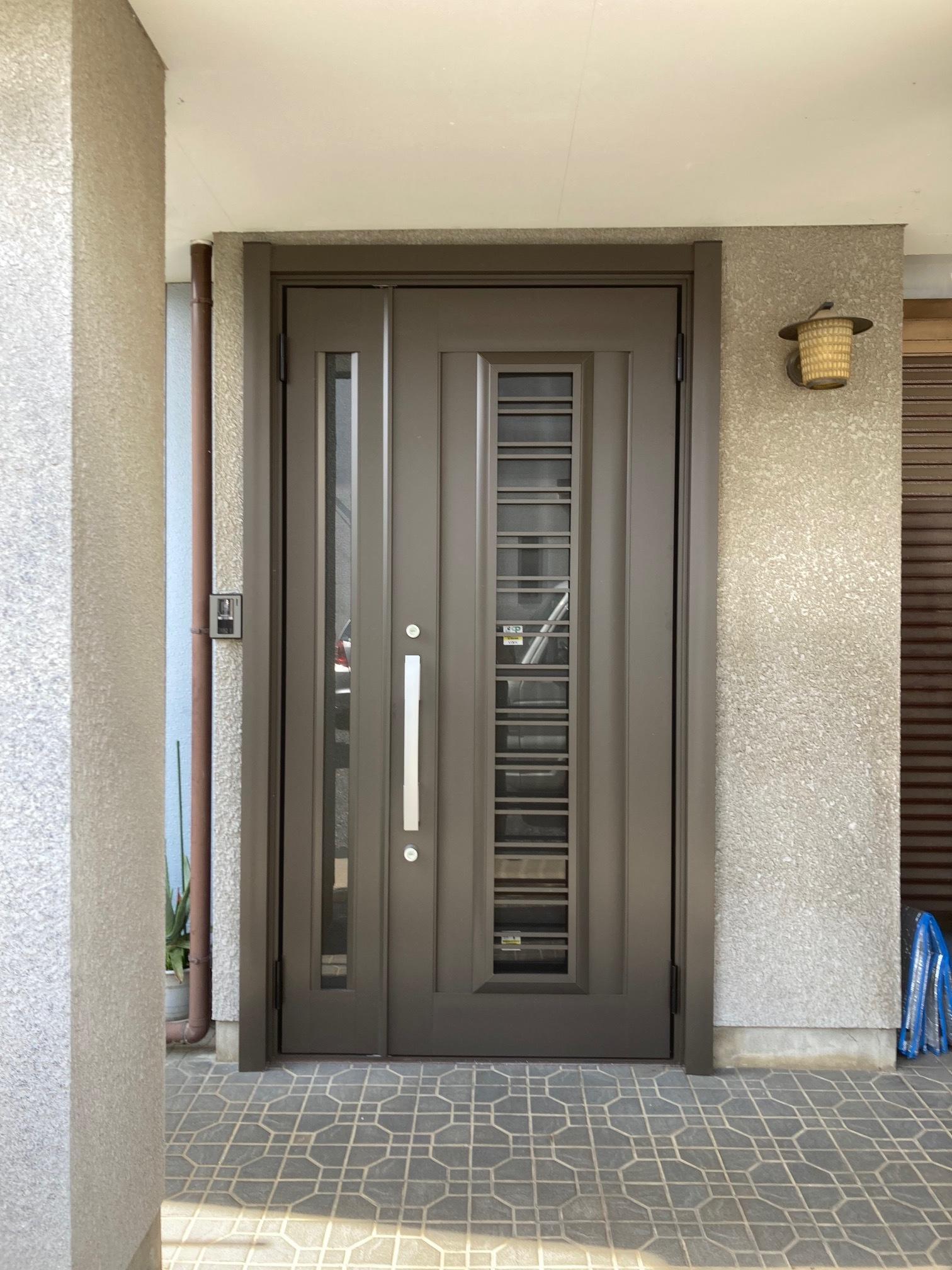 玄関ドアは建てた当時にまま、周りに家も増え防犯はどうなのか気になりはじめあちこち壊れてきてしまっていたためドア交換を希望されてご連絡頂きました。猫ちゃんもいらっしゃったため採風タイプをご提案。 鍵を閉めたままでも風が通り防犯対策もばっちり出来お昼寝してしまったも大丈夫! 猫ちゃん玄関先で外を監視!