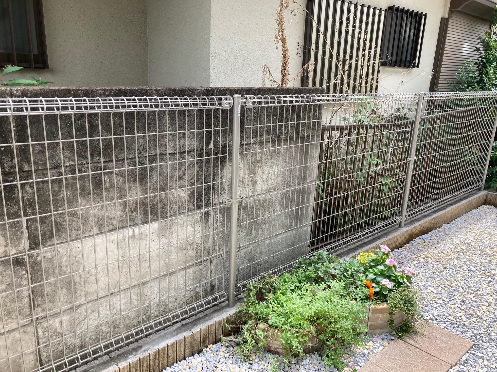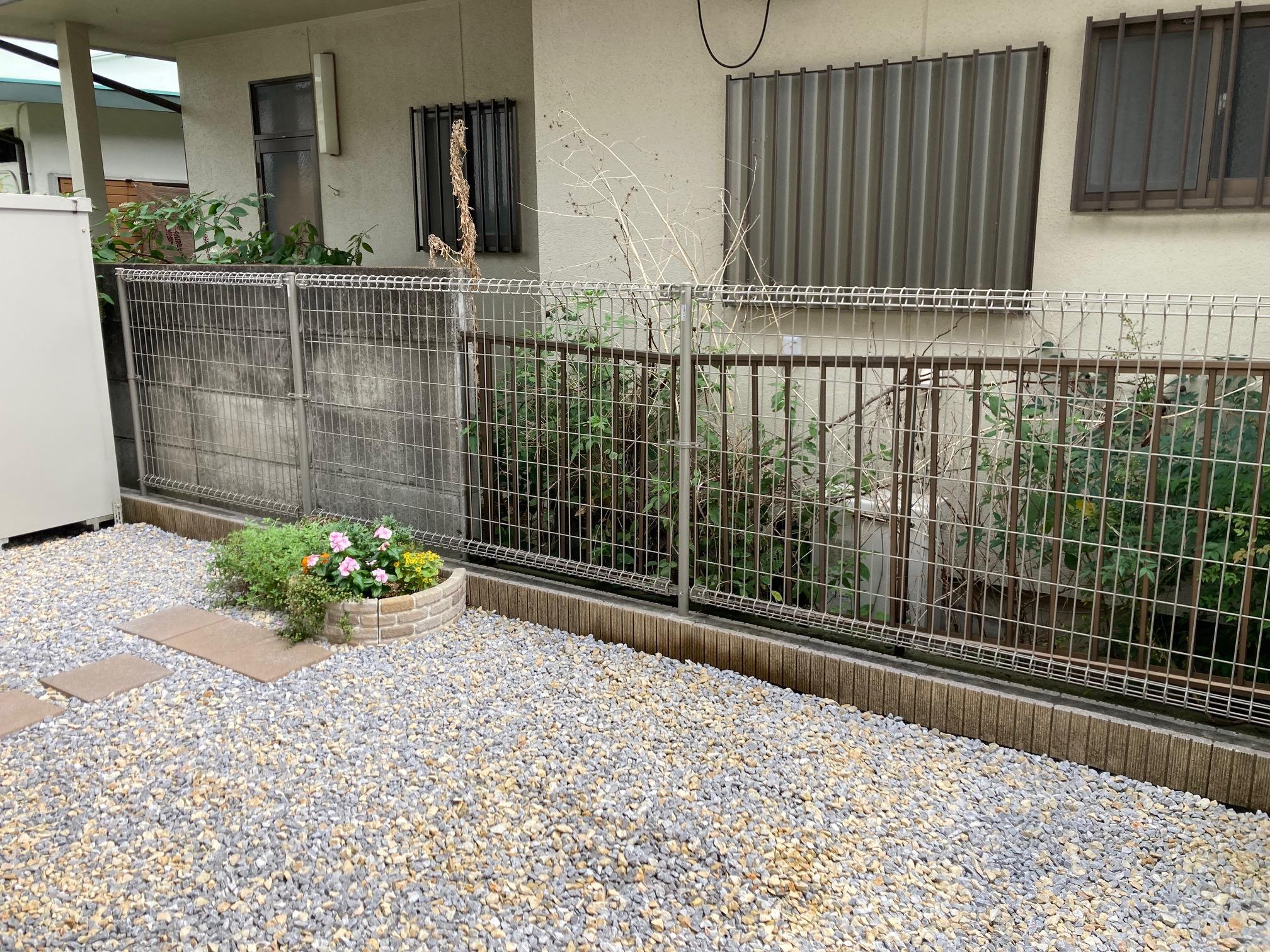間仕切りフェンス設置しました。裏のお宅は現在住んでいらっしゃらないためフェンスが外れていたりしても言えず、不安とのことでした。